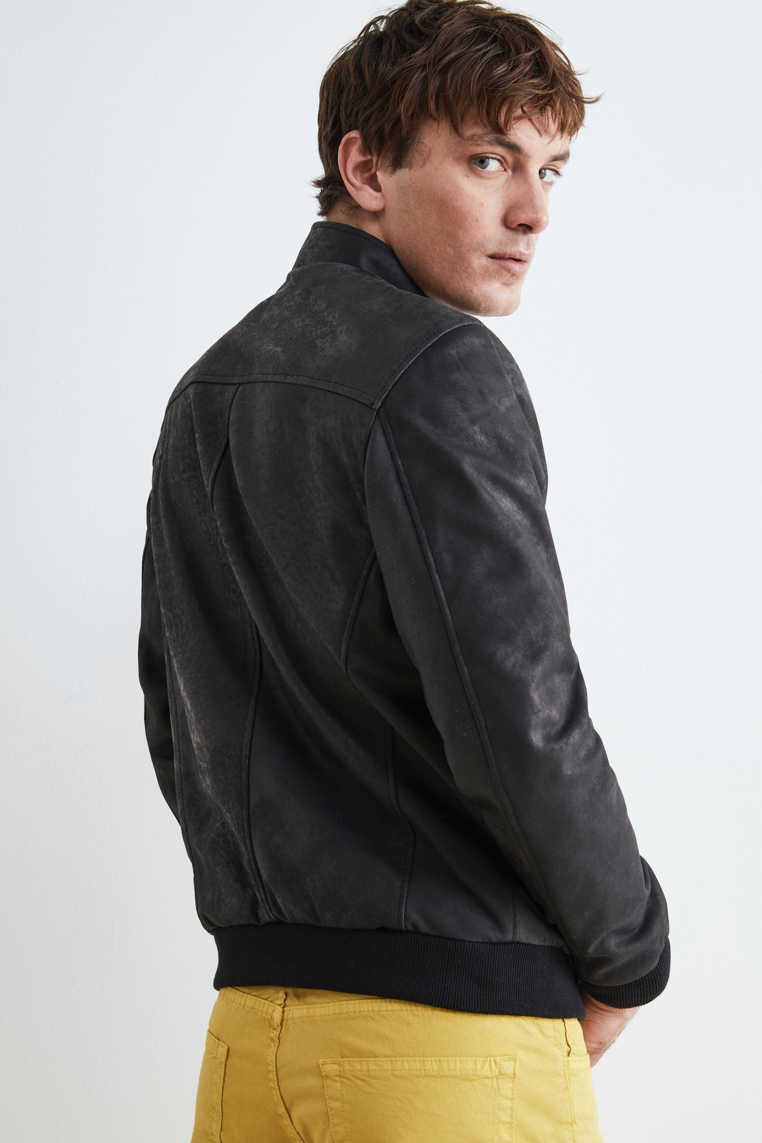 Bomber di pelle uomo - NERO
