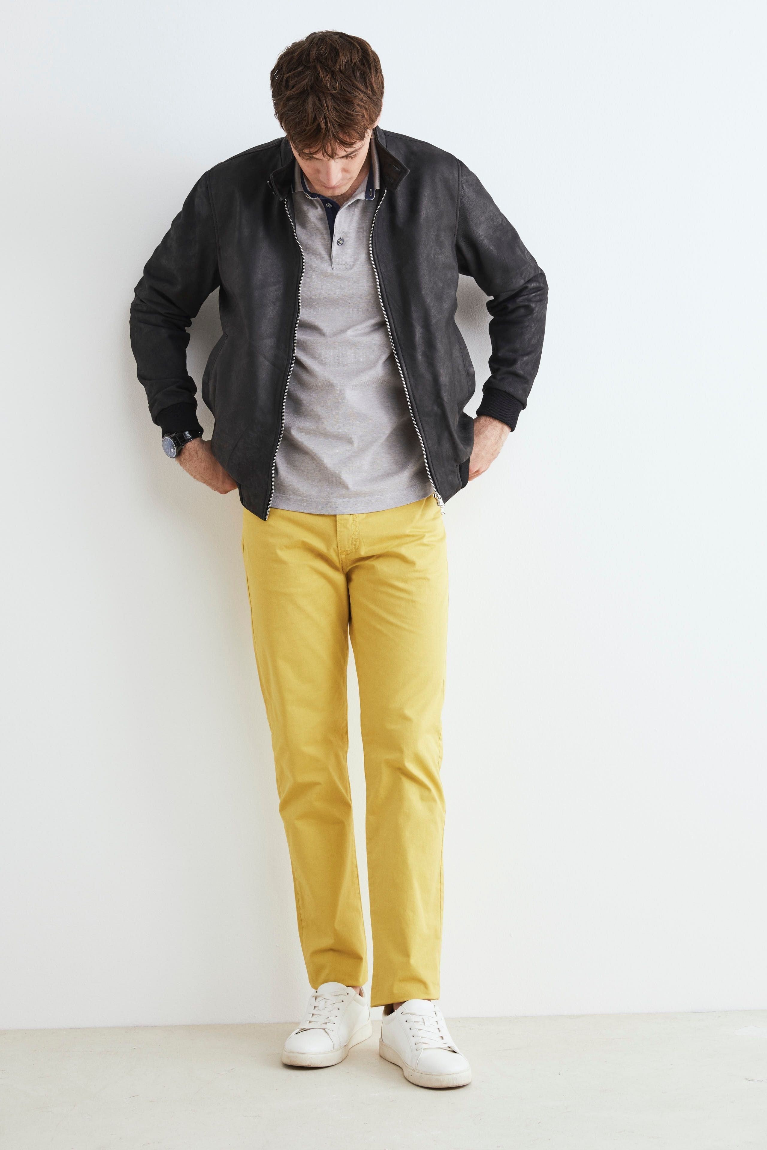 Giacca di pelle da uomo con collo alla coreana, chiusura a zip frontale e pratiche tasche. Vestibilità regolare. Realizzato con pelle di alta qualità, questo capo iconico aggiunge un tocco di raffinatezza ad ogni outfit. Con la sua silhouette classica e la lavorazione artigianale impeccabile, il nostro bomber offre un mix perfetto di comfort e robustezza. Indossalo per un look sofisticato e deciso che cattura l’attenzione in ogni occasione. Made in Italy. Il modello è alto 188 cm e indossa la taglia 50.