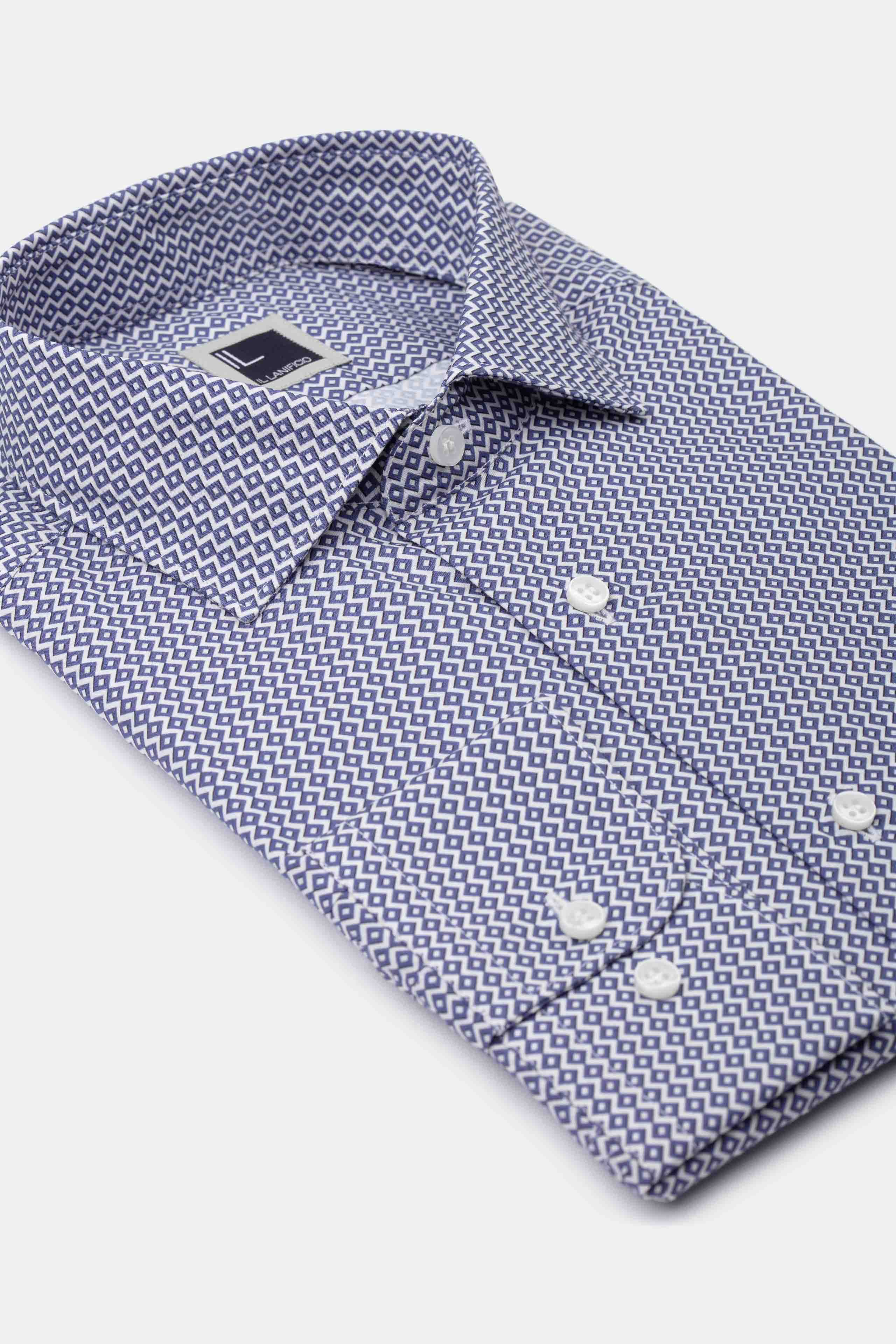 Camicia Fantasia Slim Fit in Popeline - FANT. BIANCO/BLU