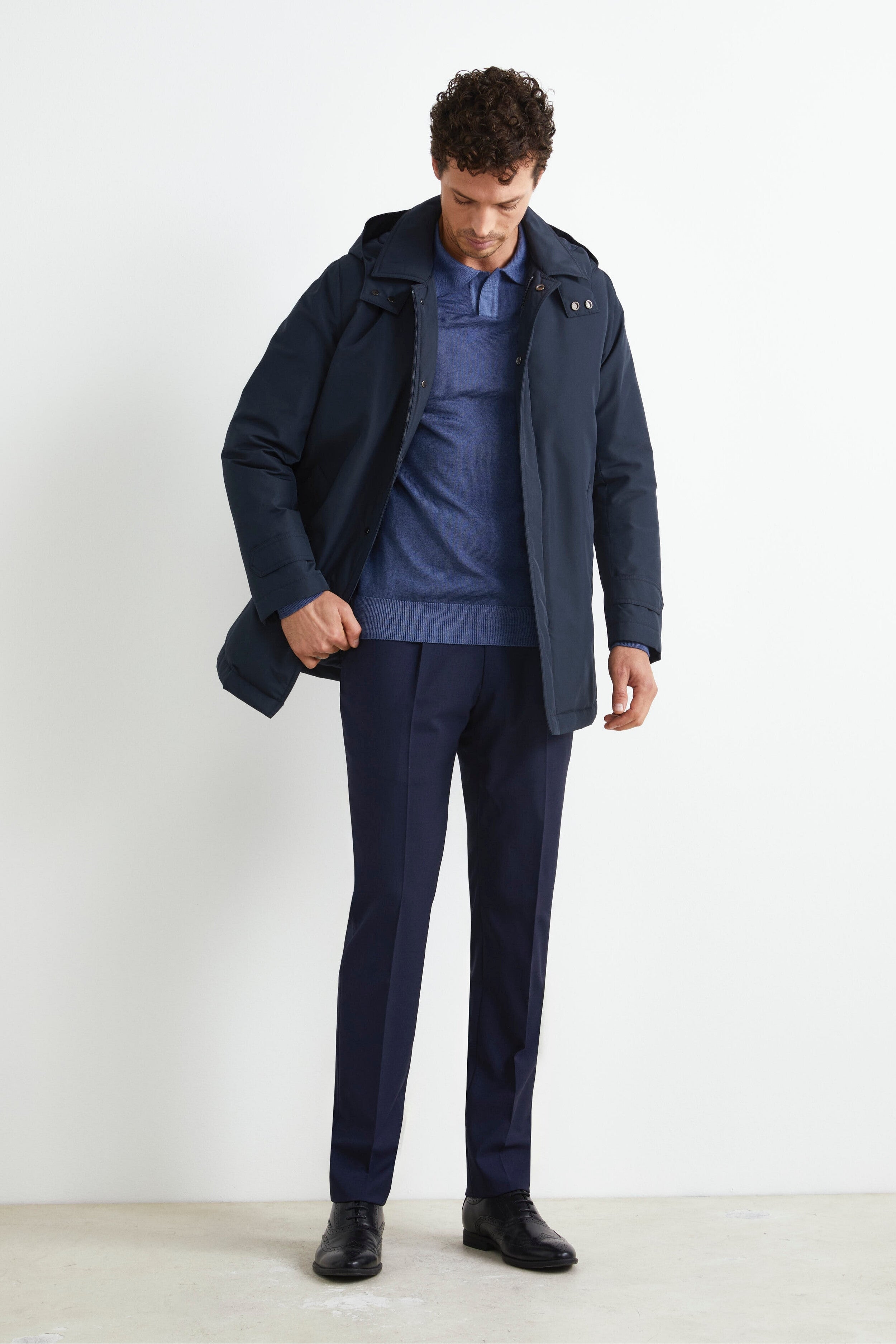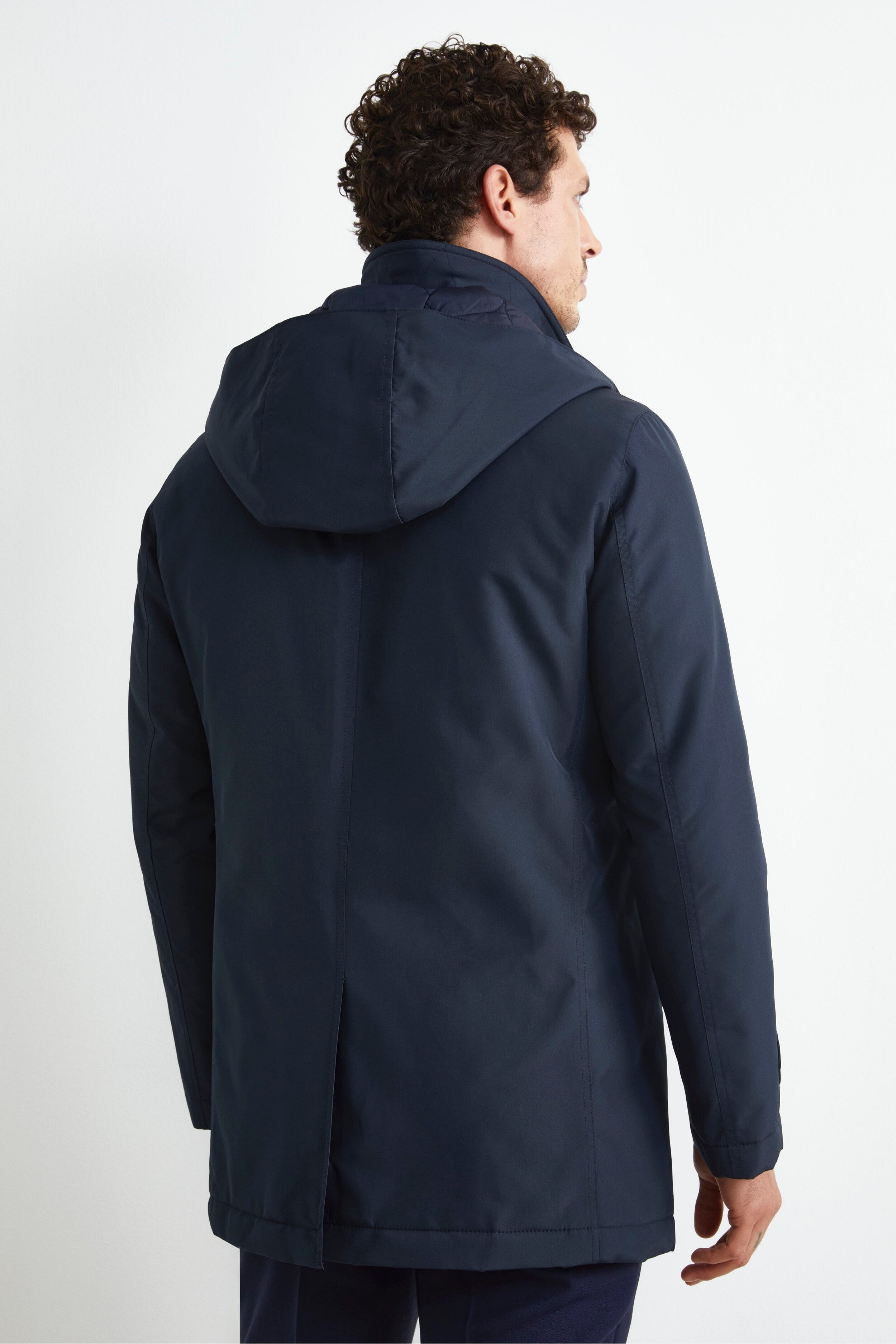 Giubbotto da uomo con cappuccio removibile, ideale per chi desidera un capo elegante e funzionale per ogni occasione. Questo giaccone da uomo è caratterizzato da una colletto alto con cappuccio removibile, da una doppia chiusura con zip e bottoni anteriore e da un singolo spacco posteriore che aggiunge comfort e libertà di movimento, mentre la lunghezza alla coscia e la vestibilità regolare lo rendono perfetto per essere indossato sopra qualsiasi outfit della raffinata collezione IL Lanificio. Il modello è alto 189 cm e indossa la taglia 50.