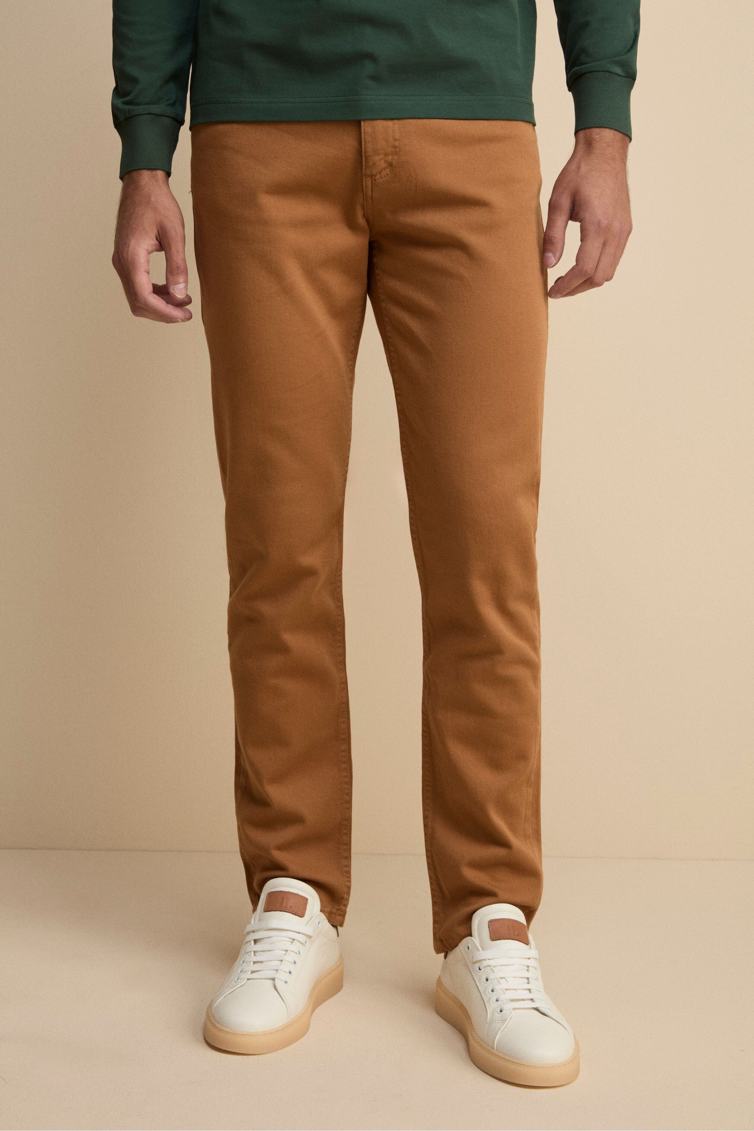 Pantalone Slim Fit Cinque Tasche in Denim - TABACCO