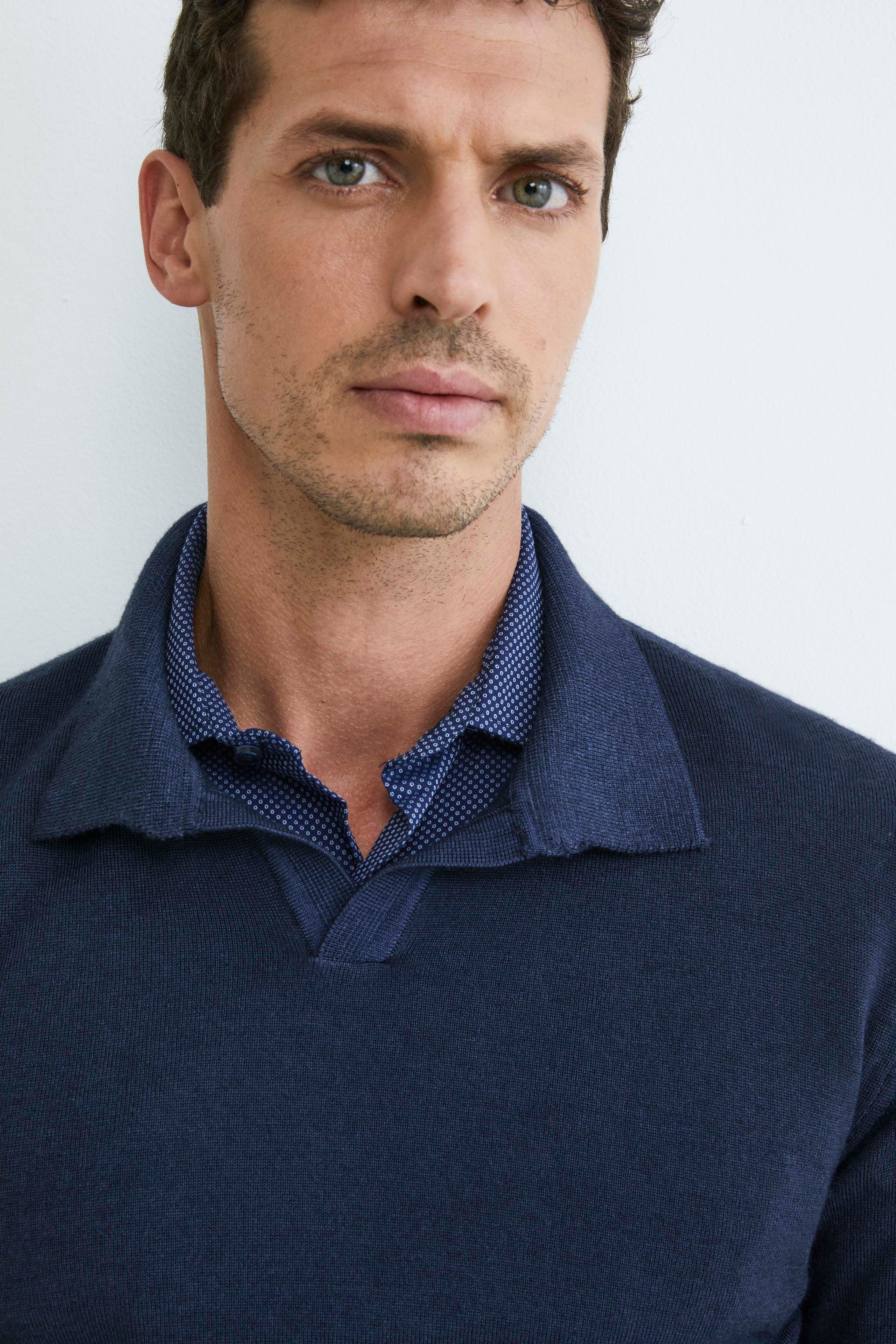 Polo derby in lana merino - BLU MARINE