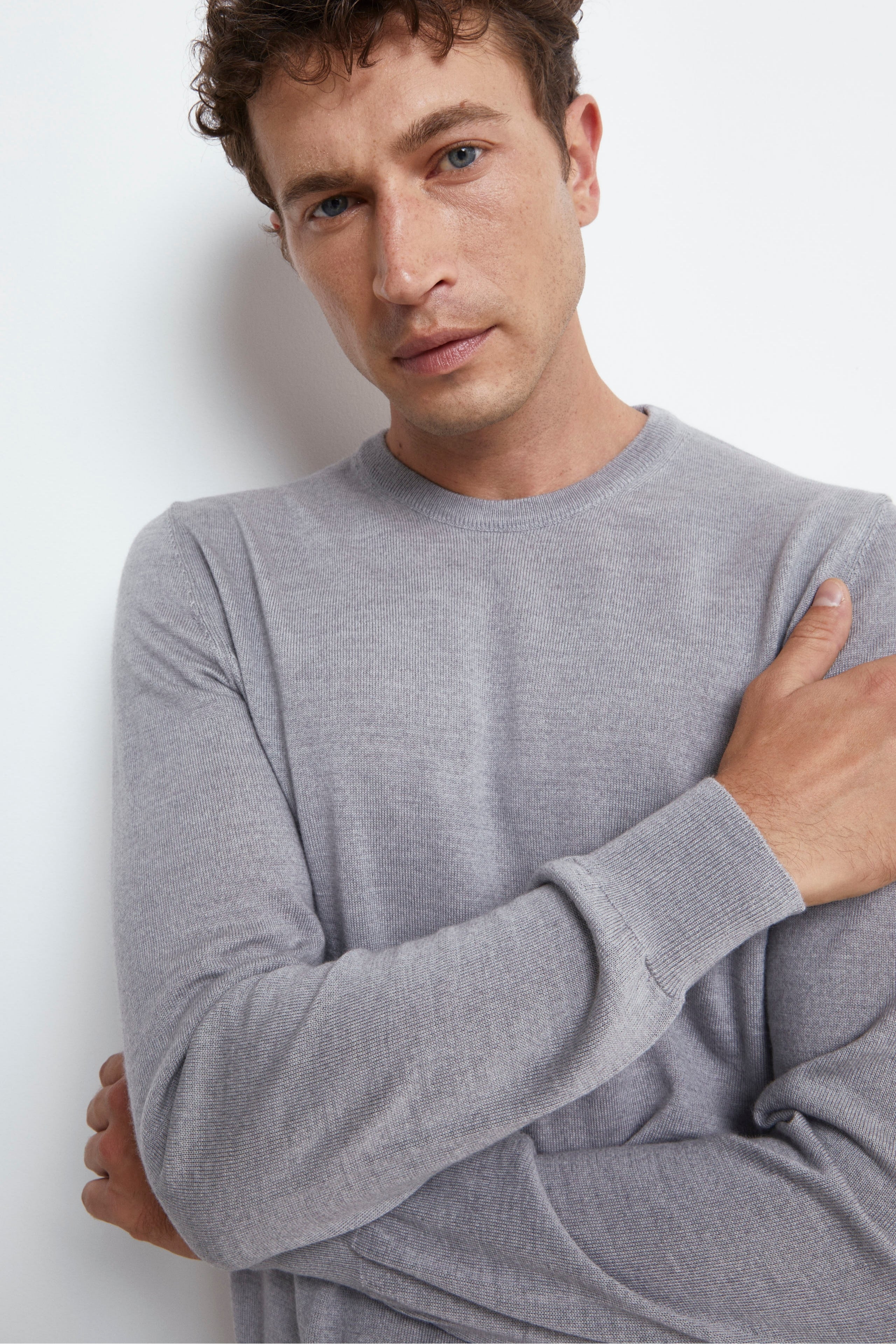 Pullover Girocollo in Lana Merino - GRIGIO CHIARO