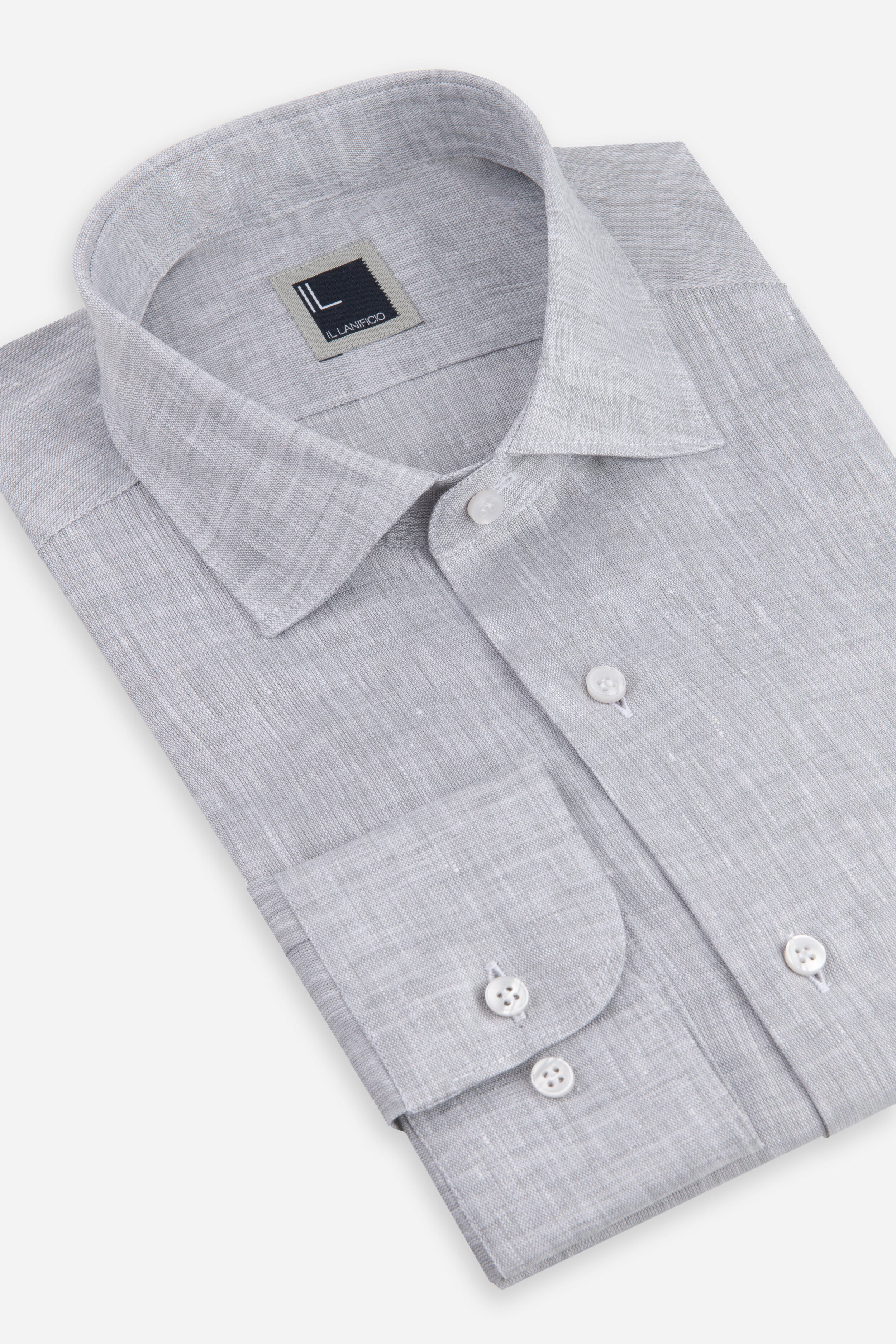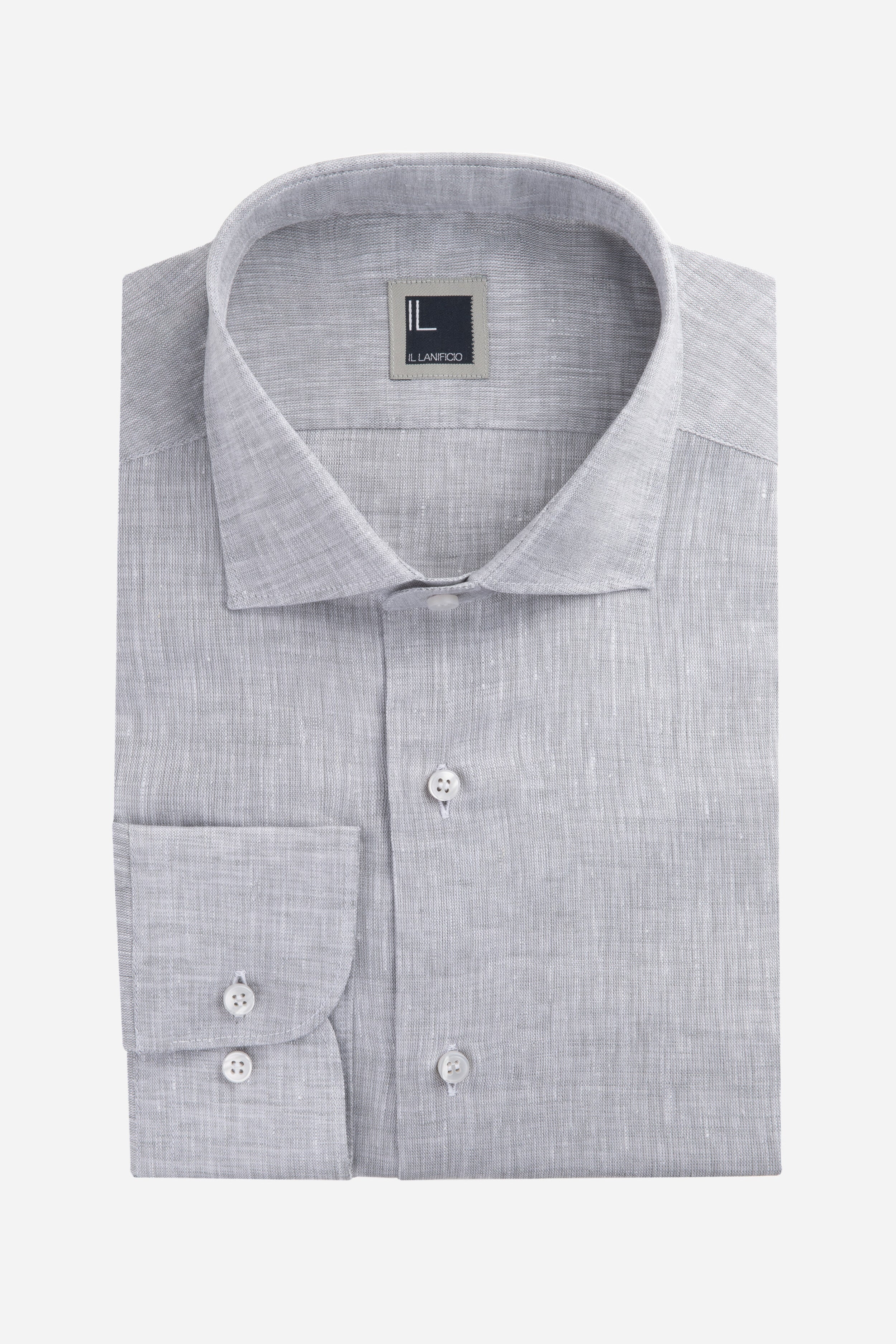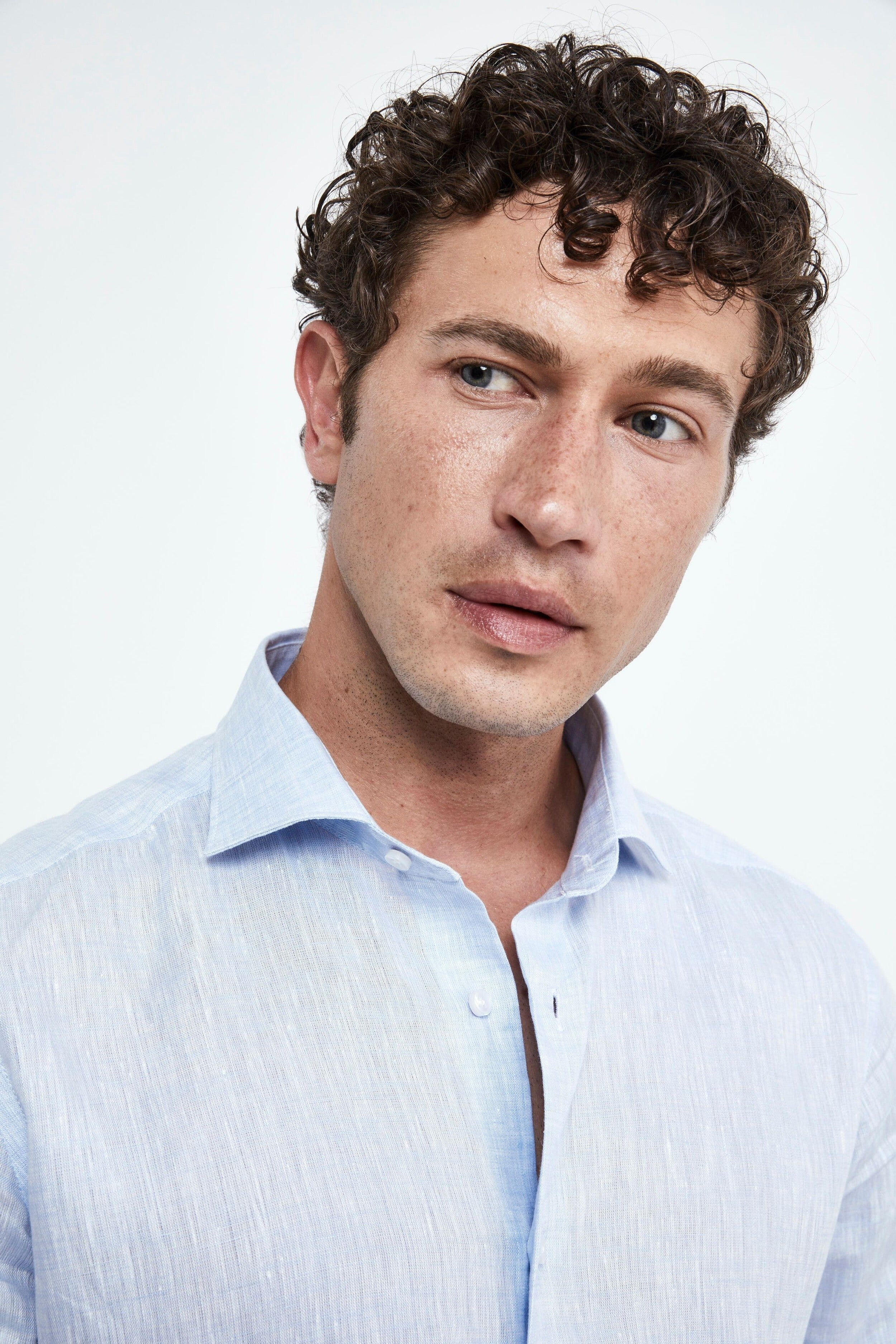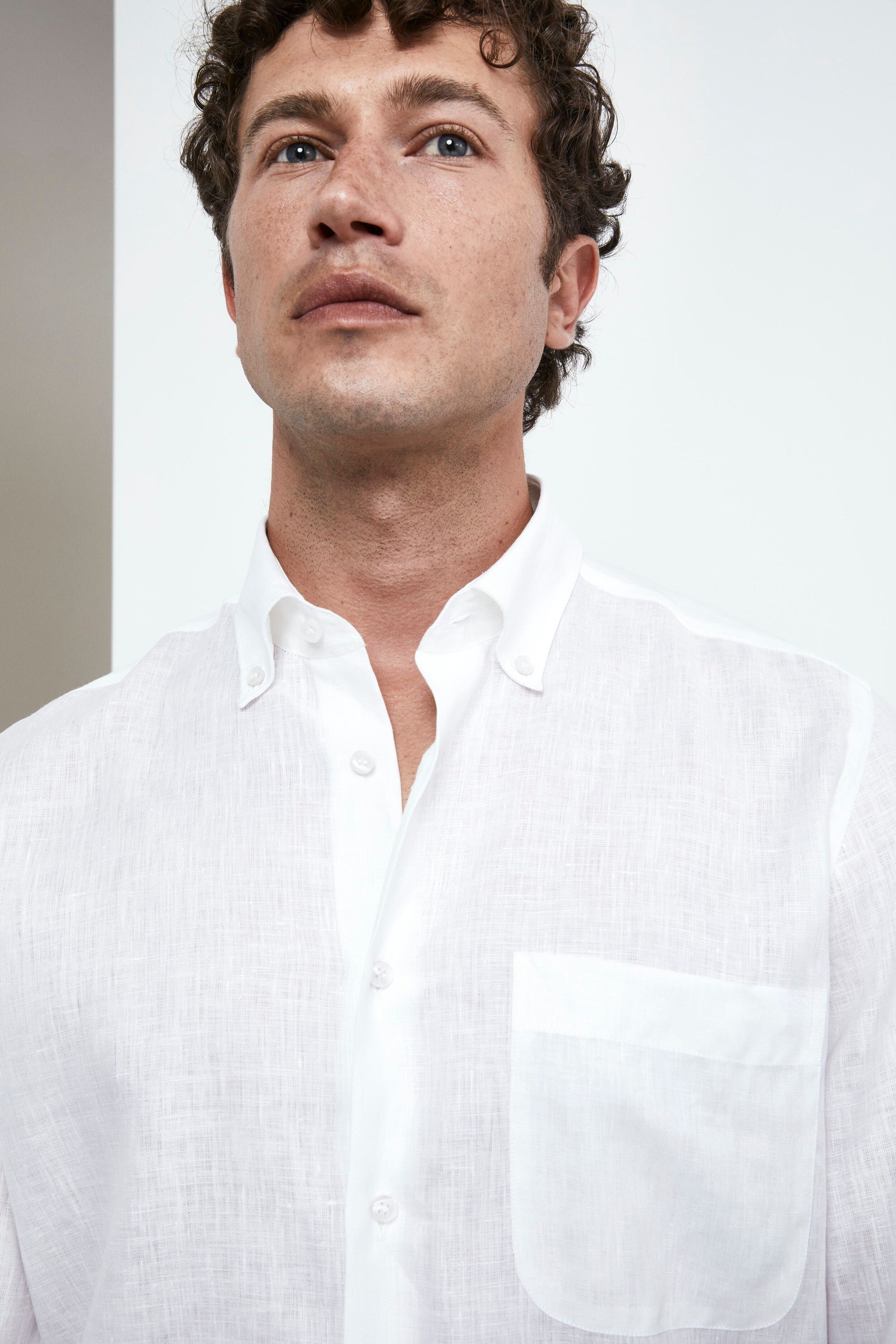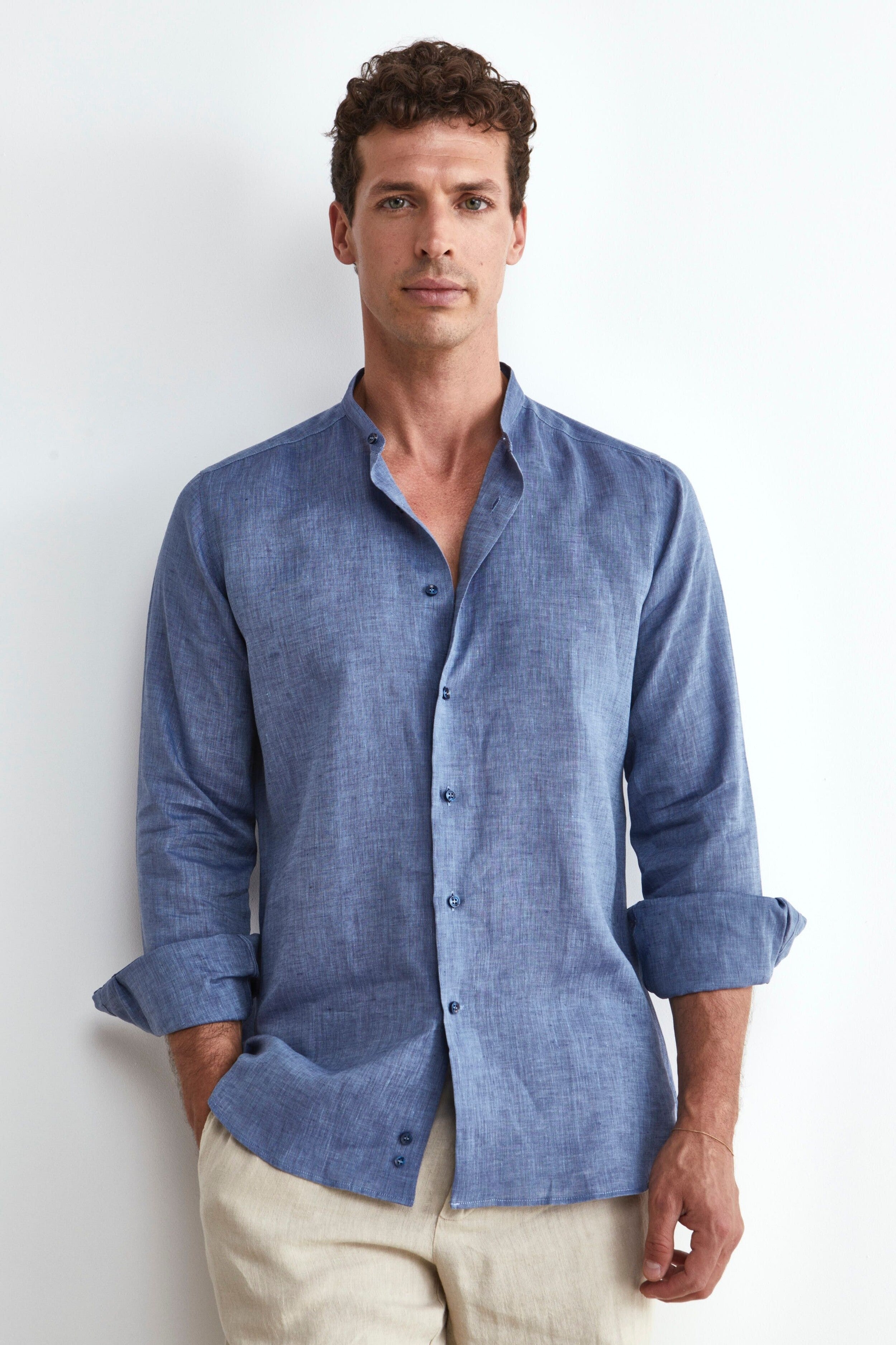 Camicia Lino Collo Francese con Taschino - RIGATO BIANCO/AZZURRO