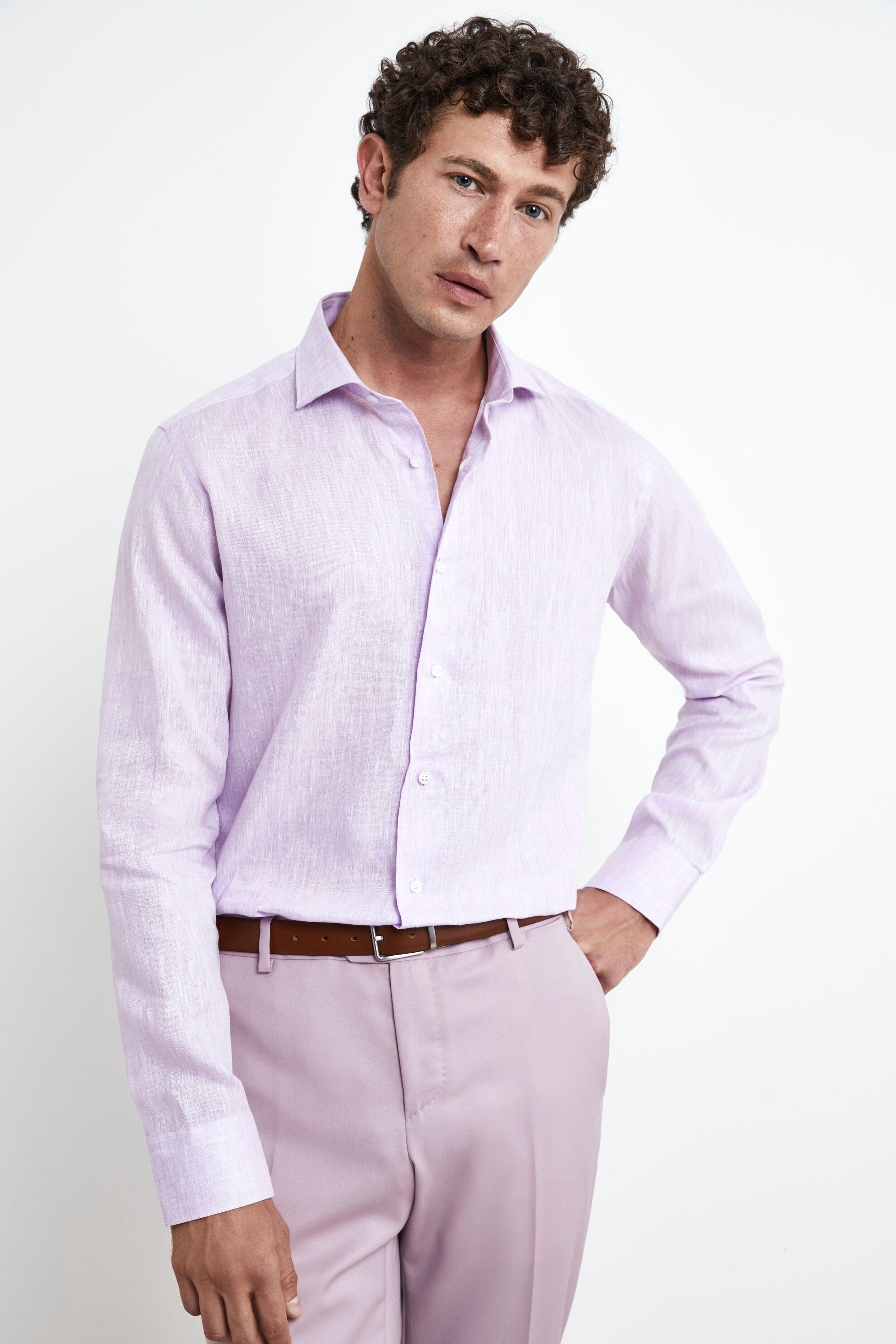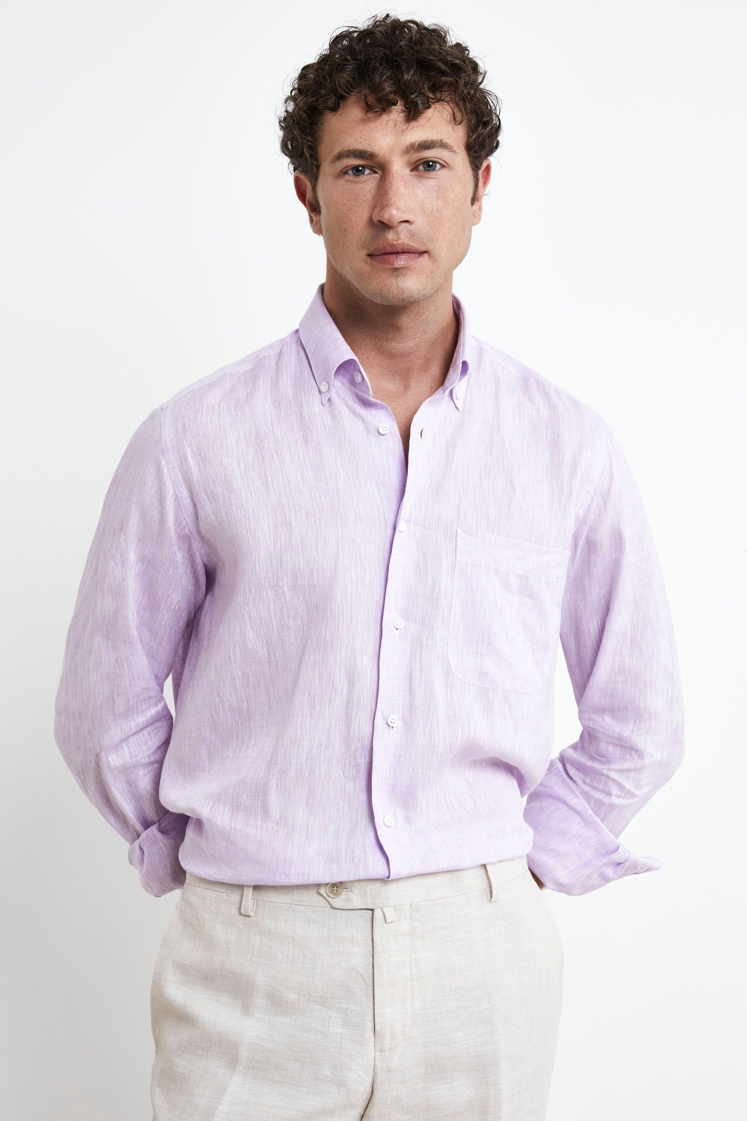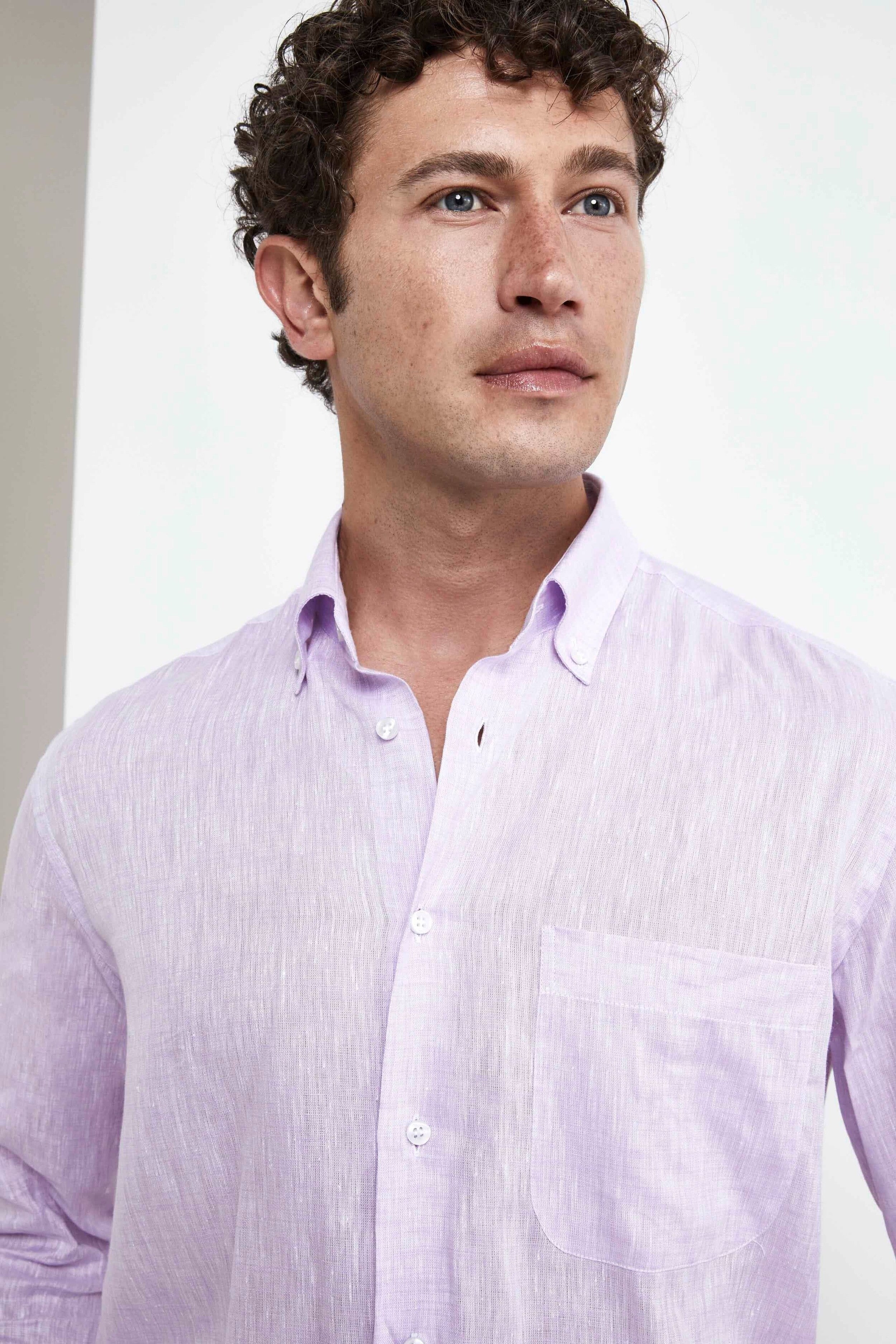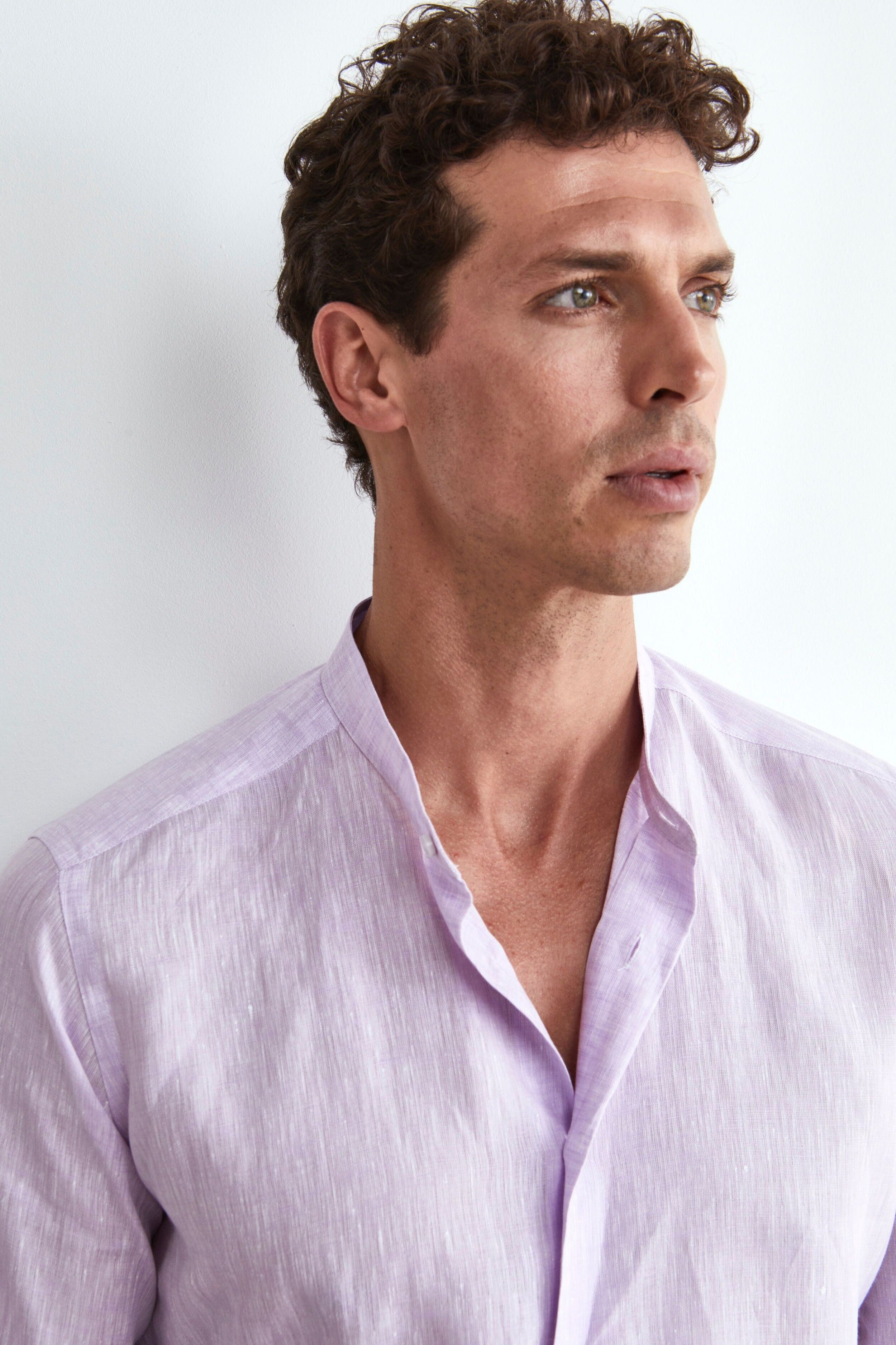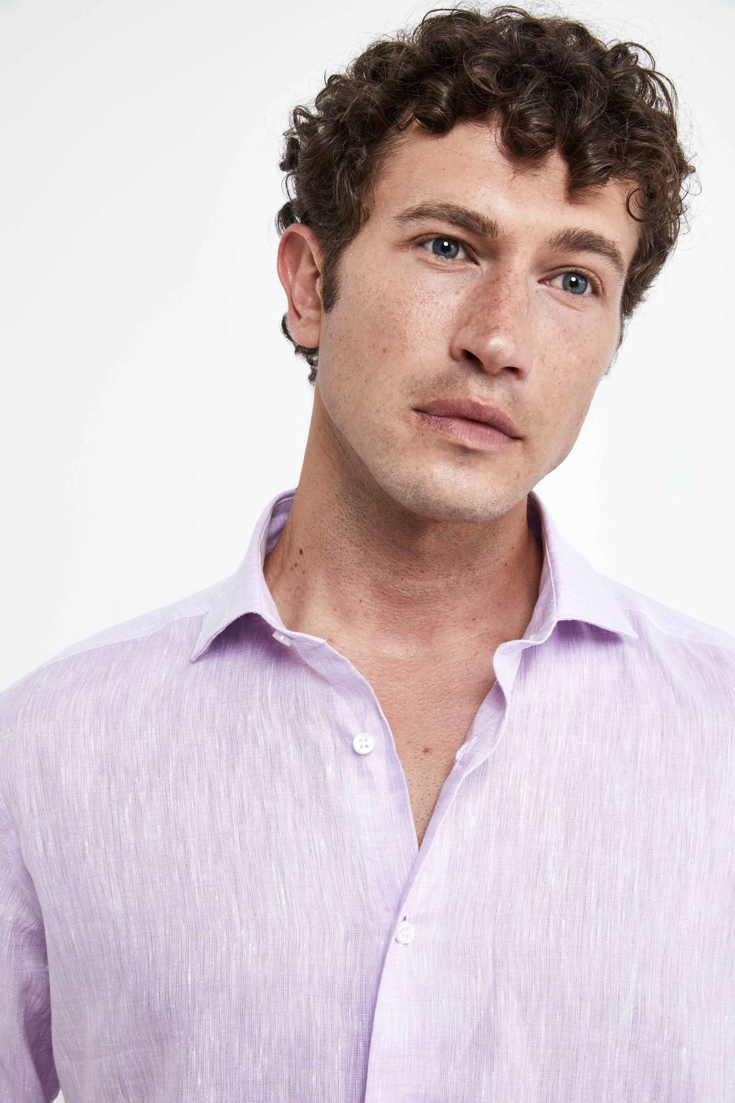 Camicia Lino Collo Francese con Taschino - RIGATO BIANCO/AZZURRO