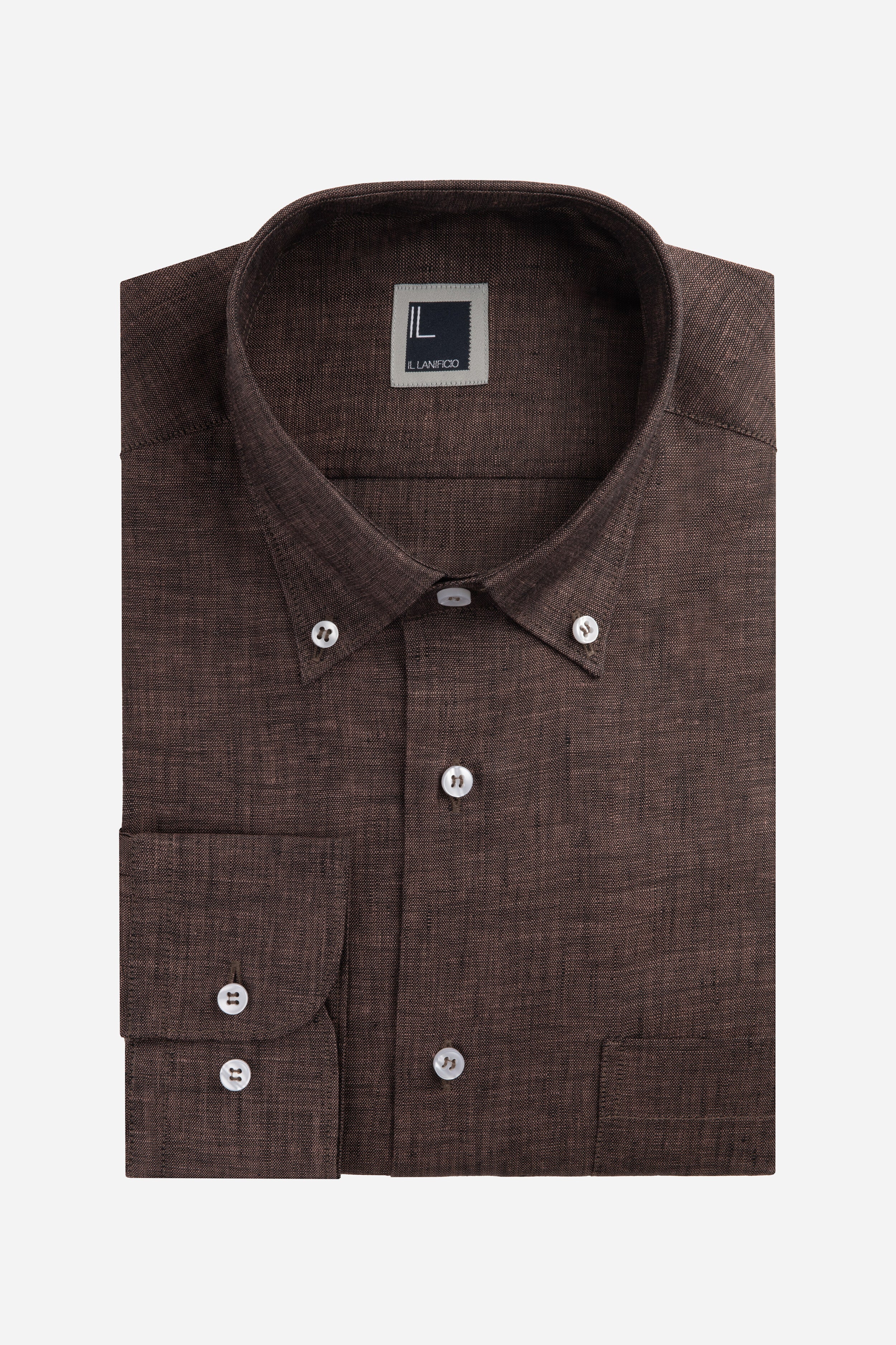Camicia Fantasia Slim Fit Collo Francese - P/POULE MARRONE