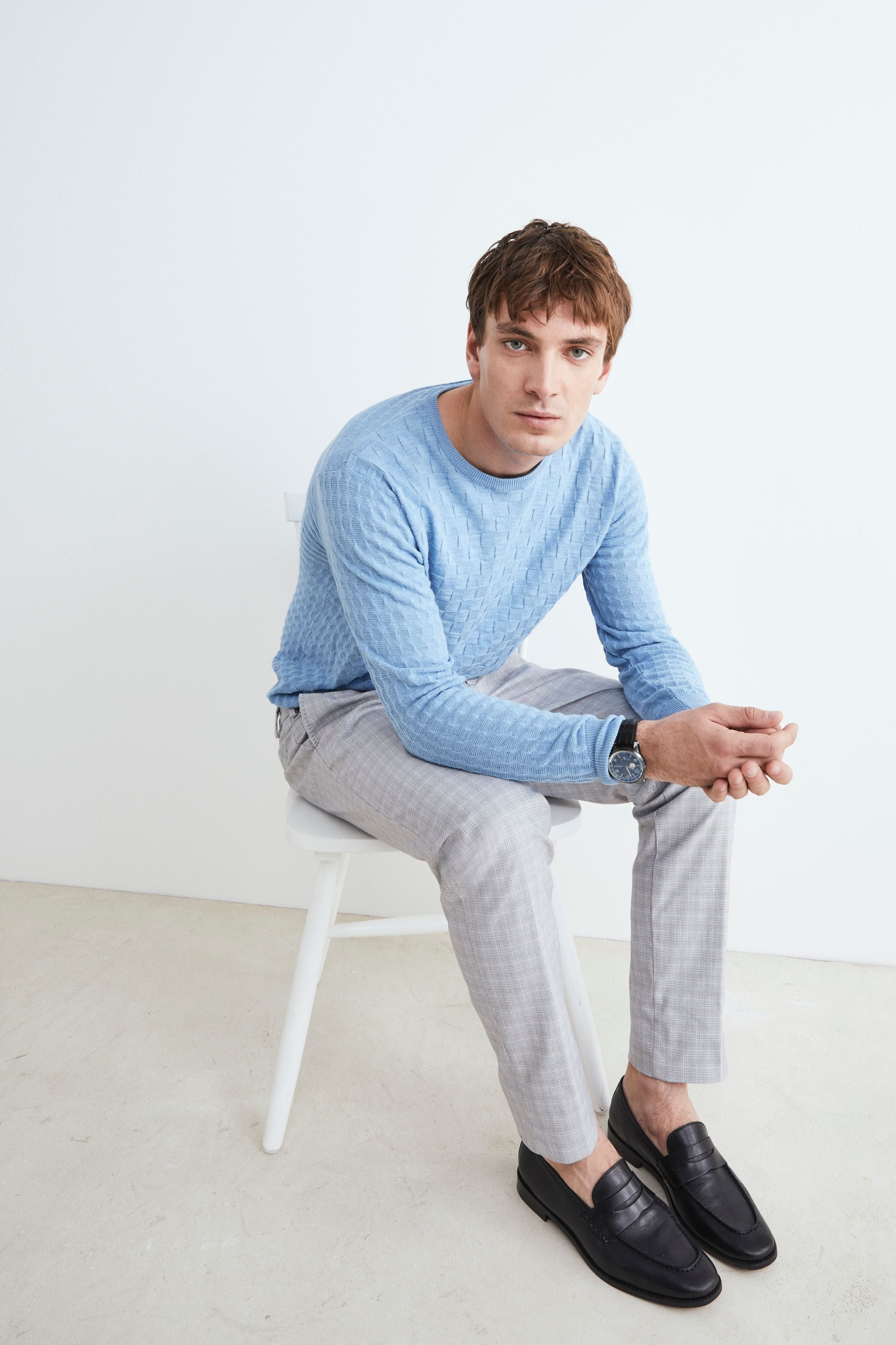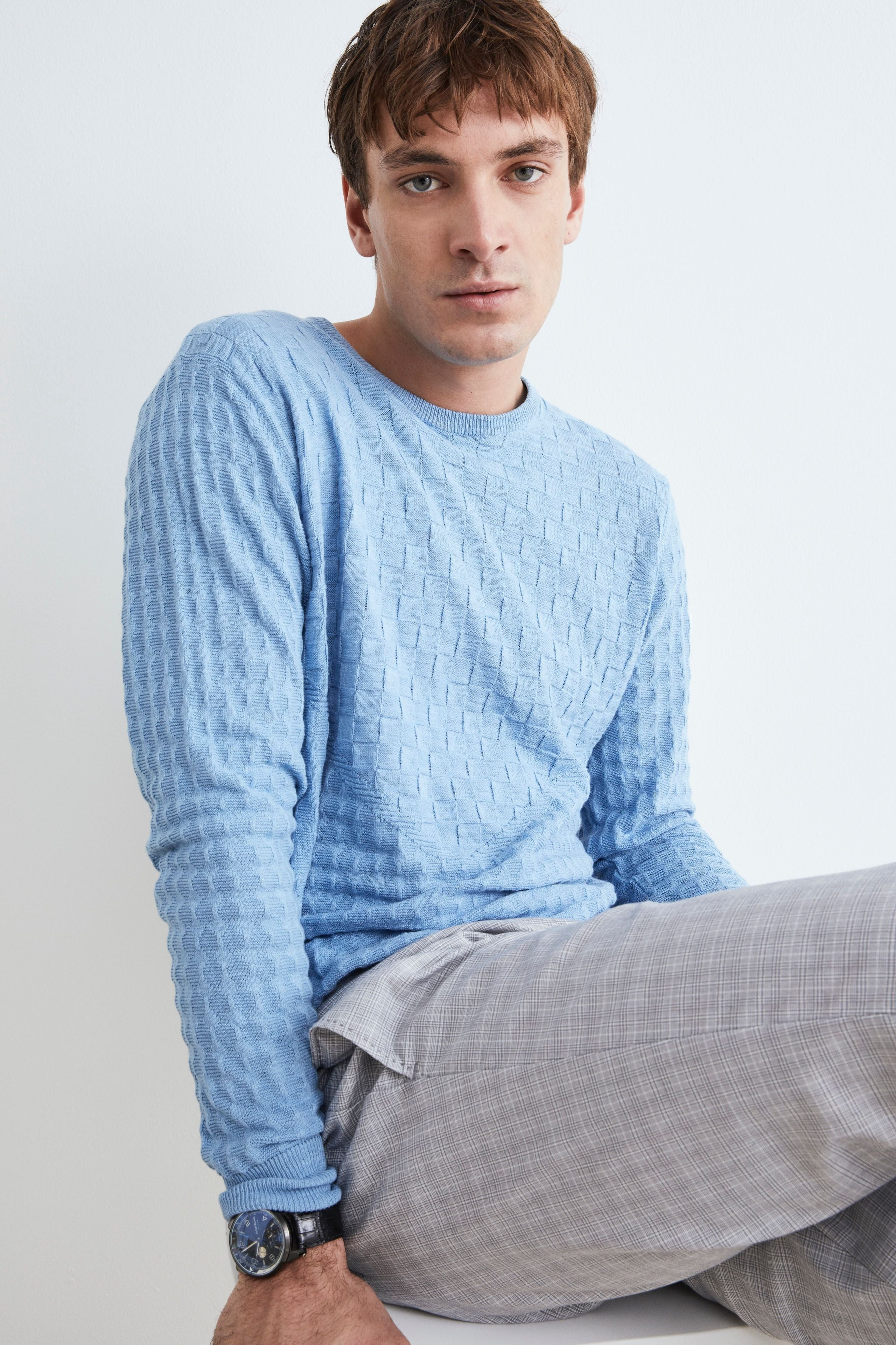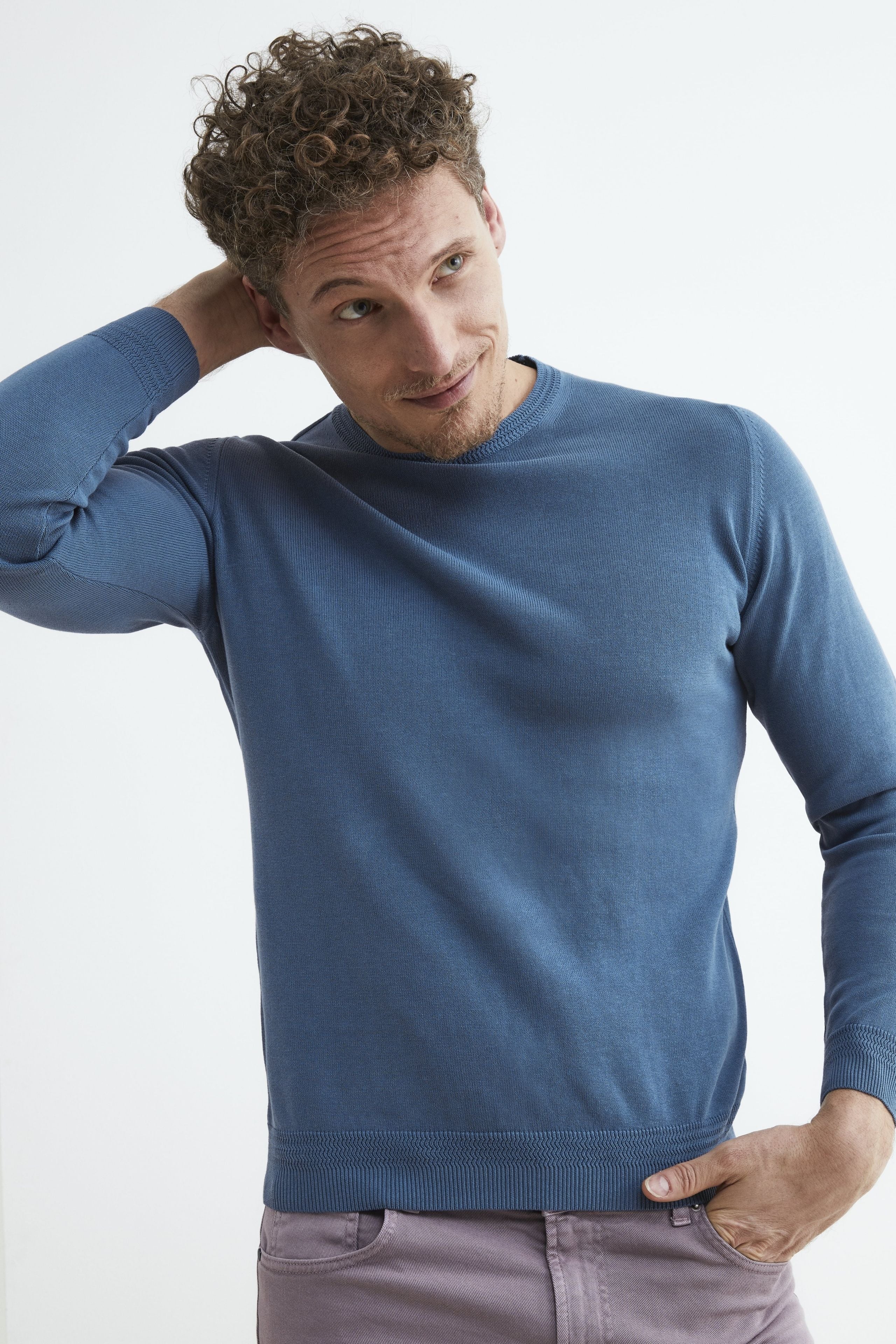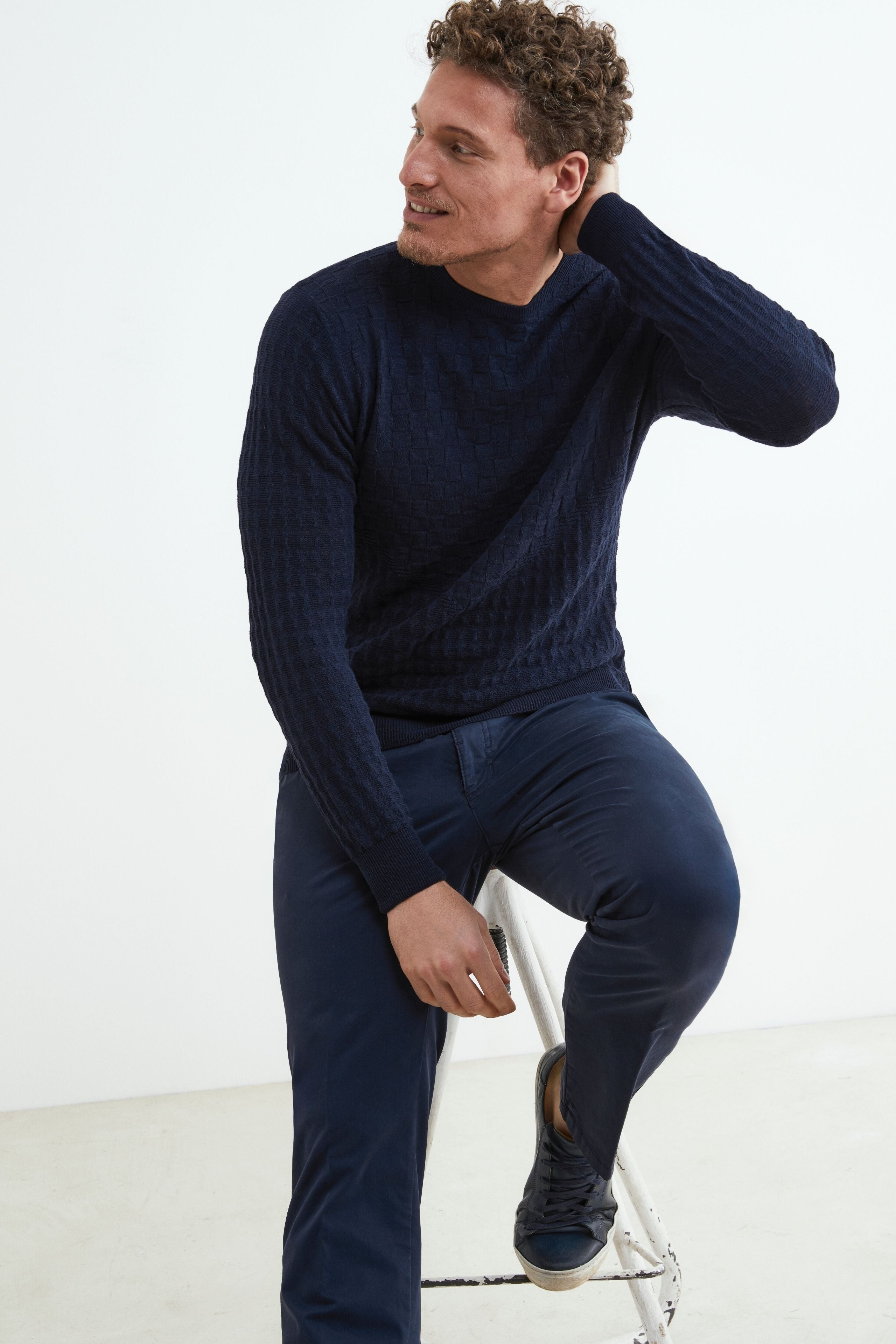 Pantalone Regular Fit in Cotone Armaturato - BLU
