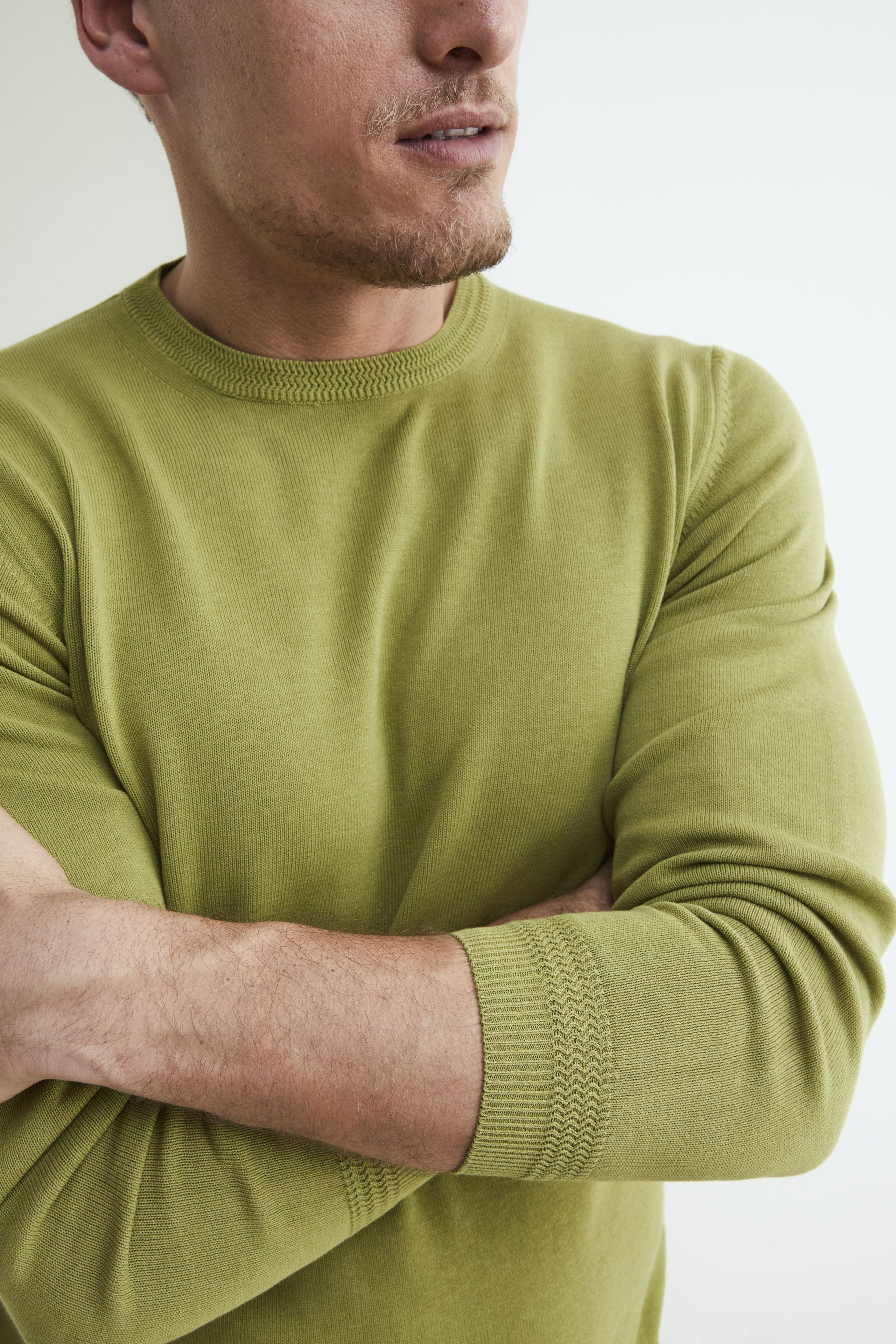 Pantalone Piquet a Sigaretta in Cotone - VERDE MILITARE