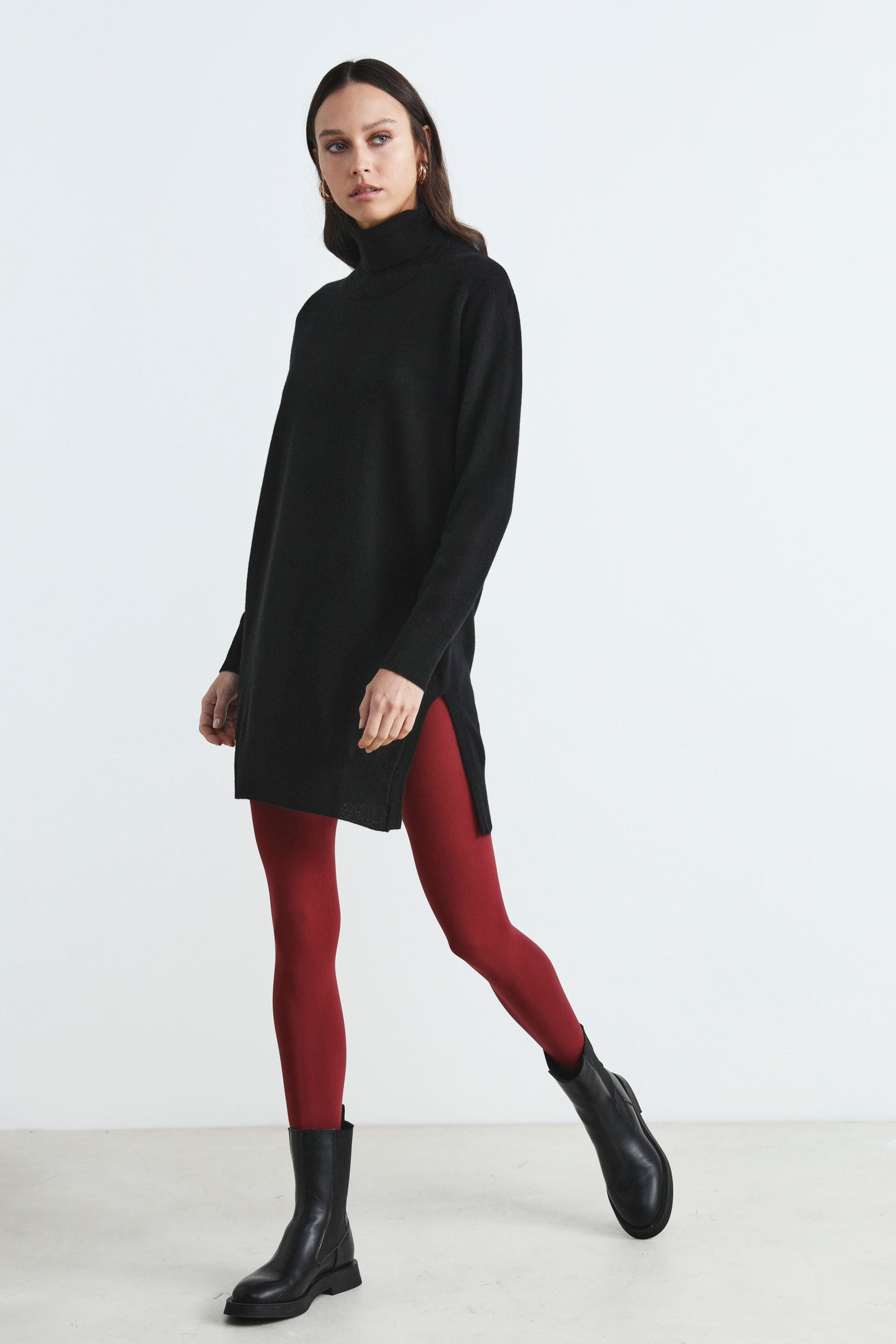 Abito dolcevita in lana - NERO