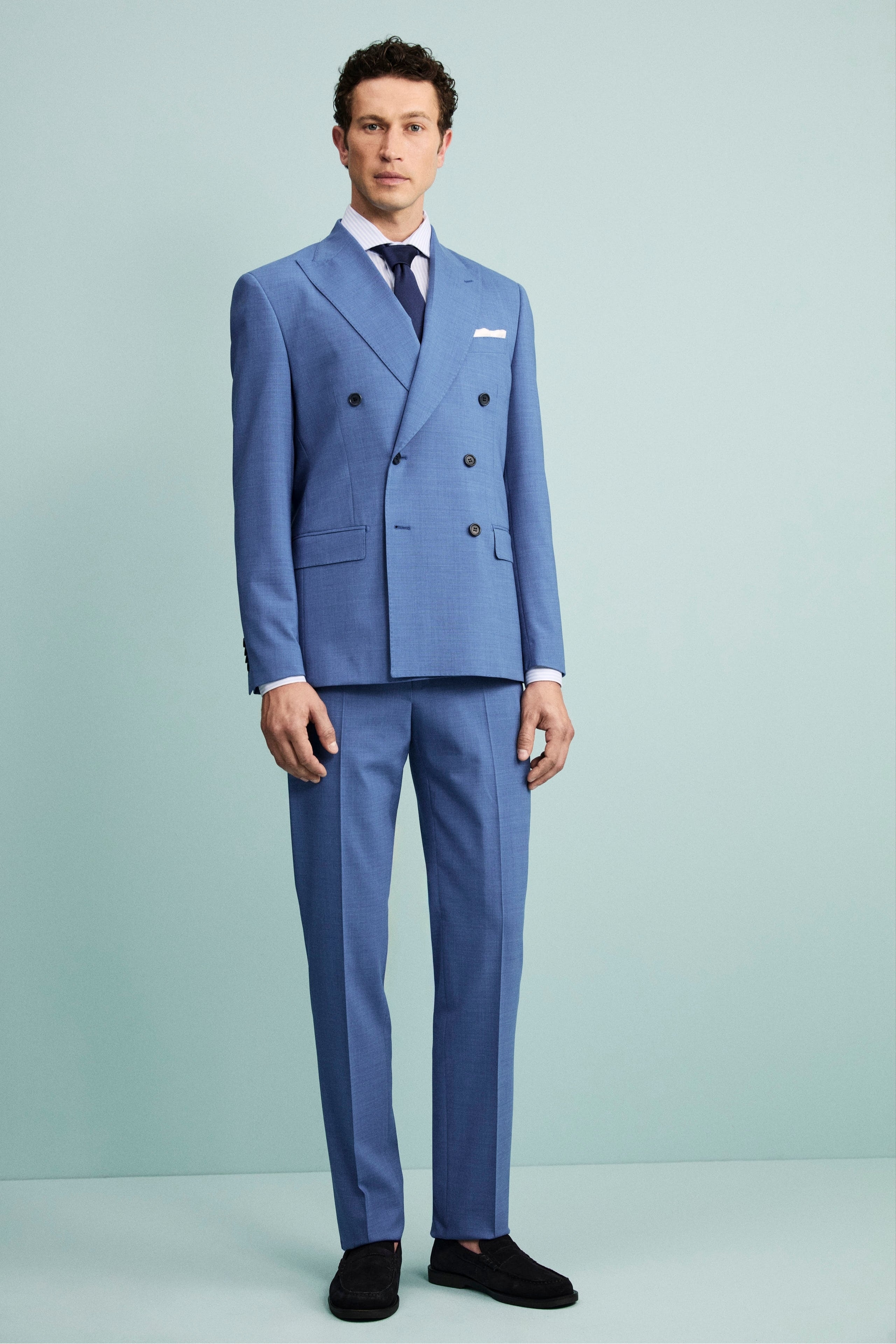 ROYALRealizzato in pregiata lana vergine e interamente Made in Italy, questo abito doppiopetto da uomo si distingue per la nuance royal e per il taglio slim che valorizza la silhouette. La giacca presenta revers a lancia, chiusura frontale con bottoni, tasche con pattina, taschino a taglio sul cuore ideale per pochette e doppio spacco posteriore. Completamente foderata, è pensata per offrire comfort e stile in tutte le stagioni. Il pantalone coordinato completa l’abito con una linea asciutta ed elegante, ed è dotato di tasche America, tasche posteriori a filetto con bottone e passanti per cintura. Parte della collezione IL Lanificio, questo abito in lana è perfetto per cerimonie, occasioni formali o eventi di lavoro di alto profilo. Abbinalo a una camicia bianca e scarpe derby lucide per un look impeccabile, oppure osa con una camicia a contrasto per un tocco più contemporaneo. Il modello è alto 189 cm e indossa la taglia 50.
