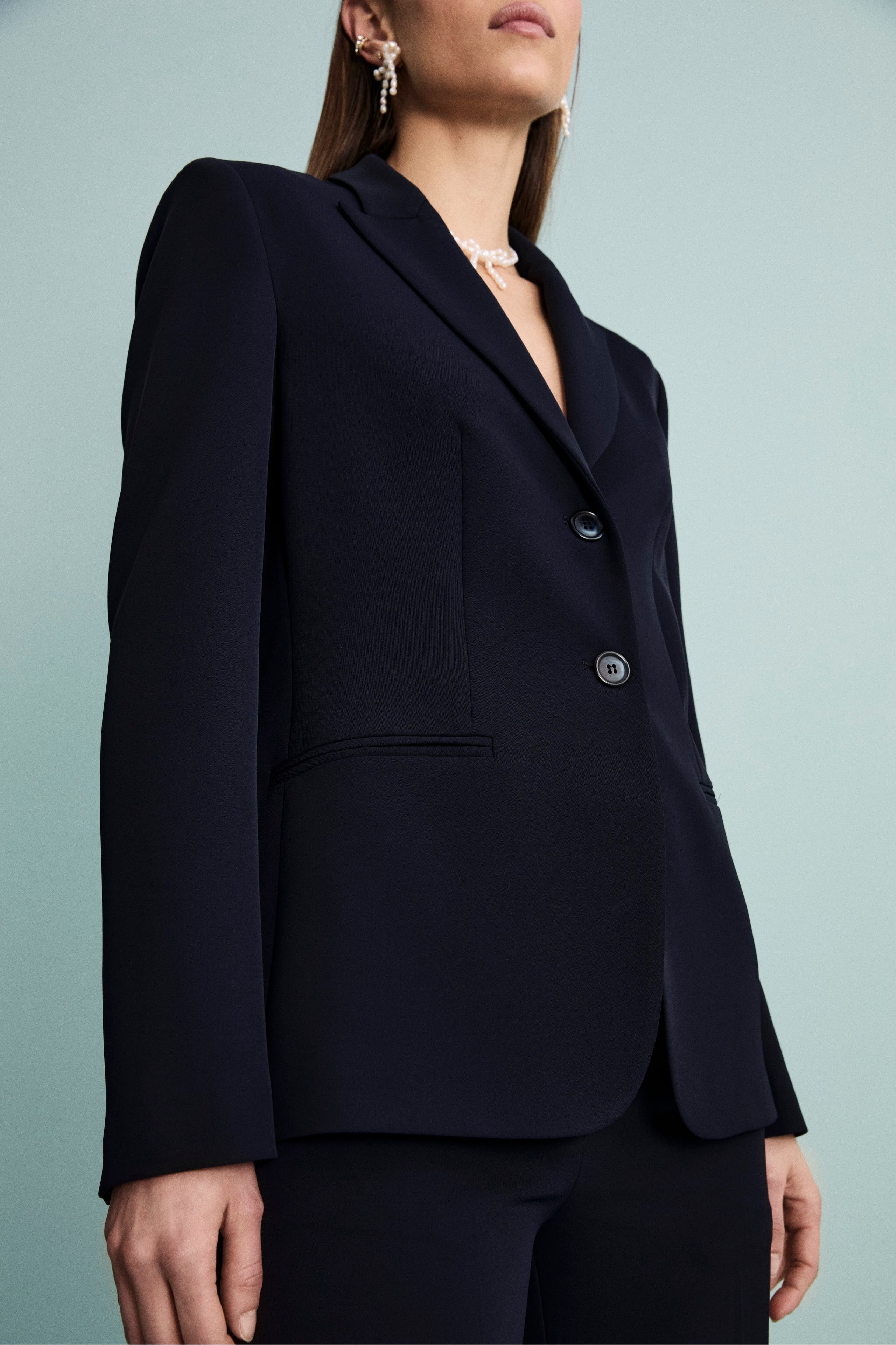 BLUBlazer Cerimonia Monopetto da donna, un capo esclusivo realizzato in tessuto Cady, noto per la sua morbidezza, resistenza e capacità di mantenere la forma, offrendo al contempo una sensazione di lusso e comfort. Questo blazer si distingue per il revers a lancia, un dettaglio elegante che ne esalta il design sofisticato. Caratterizzato da una chiusura a 2 bottoni frontale e da tasche con doppio filetto anteriori, il capo presenta un taglio ed una vestibilità regolari che garantiscono una vestibilità perfetta. Lo spacco singolo posteriore e la completa fodera interna aggiungono un ulteriore tocco di eleganza e funzionalità. Realizzato in Italia, questo blazer da cerimonia è parte della collezione IL Lanificio, un vero simbolo di stile senza tempo. Per un look impeccabile, abbina questa giacca al pantalone a palazzo coordinato, creando un tailleur raffinato e versatile, perfetto per cerimonie ed eventi eleganti. La modella è alta 177 cm e indossa la taglia 42.