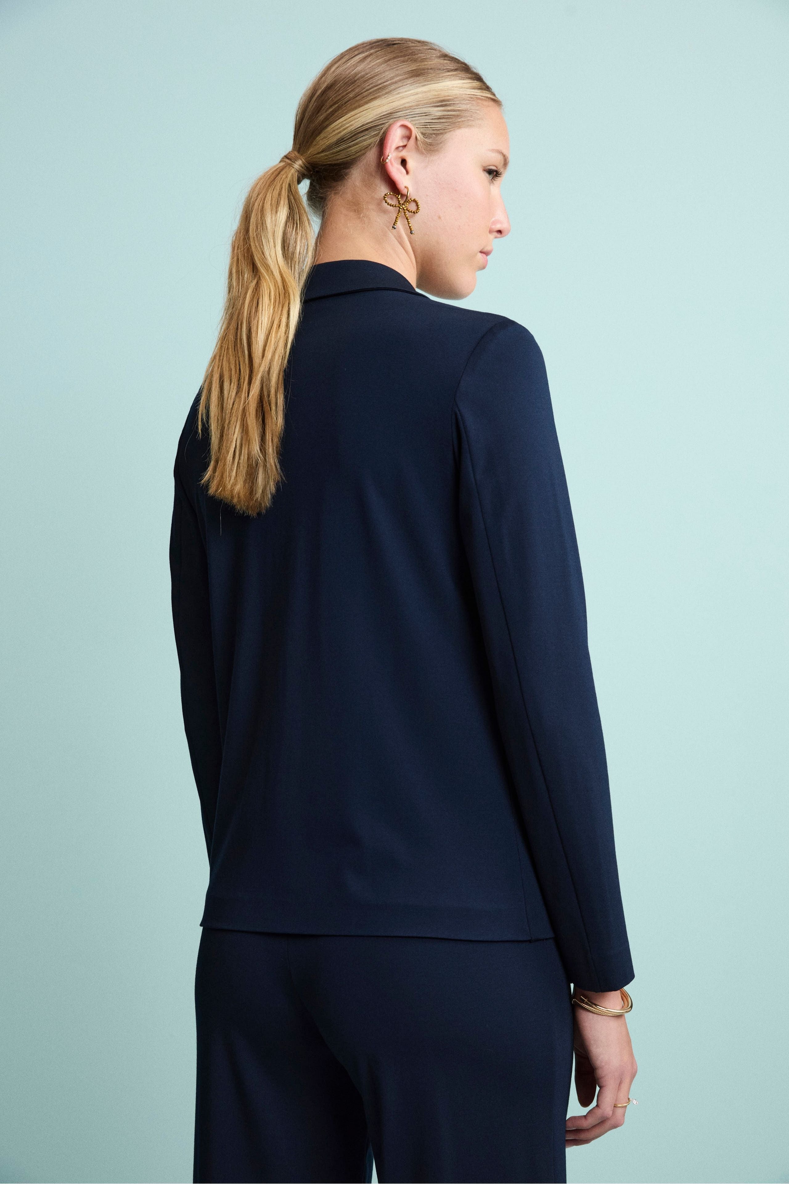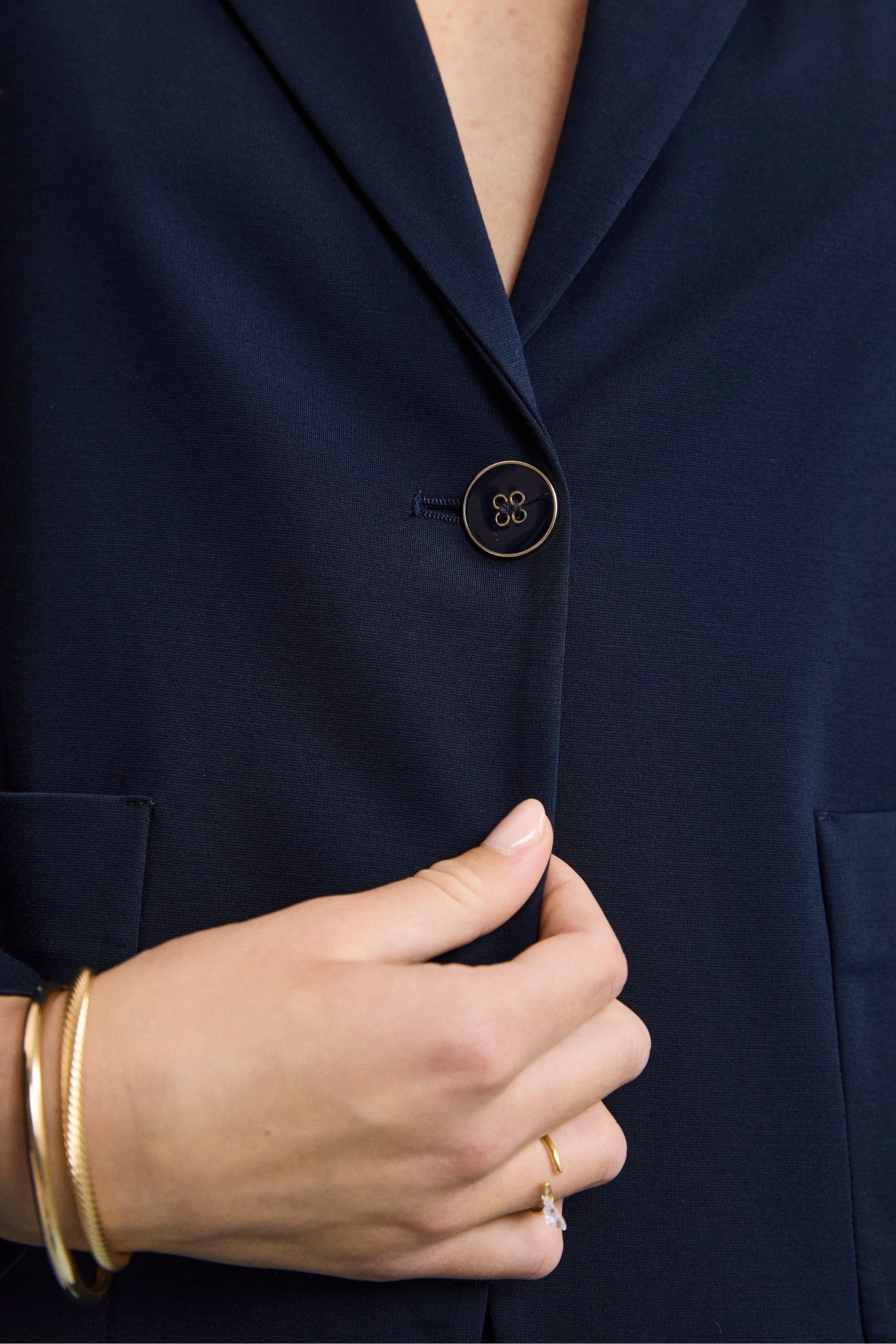BLURaffinato e confortevole, il Blazer Elegante in Jersey è la giacca perfetta per completare i tuoi look da cerimonia e occasioni speciali. Realizzato in jersey punto Milano, un tessuto tecnico dalla struttura compatta e flessibile, garantisce una vestibilità regolare e una tenuta impeccabile per tutto il giorno. Il design presenta revers classico, chiusura frontale con bottone, tasche applicate e taglio regolare, mentre la fodera interna dona una finitura elegante e curata nei dettagli. Ideale da abbinare al pantalone coordinato della collezione IL Lanificio per un completo da donna sofisticato e versatile. Made in Italy, pensato per chi desidera coniugare stile, eleganza e comfort. La modella è alta 175 cm e indossa la taglia 42.