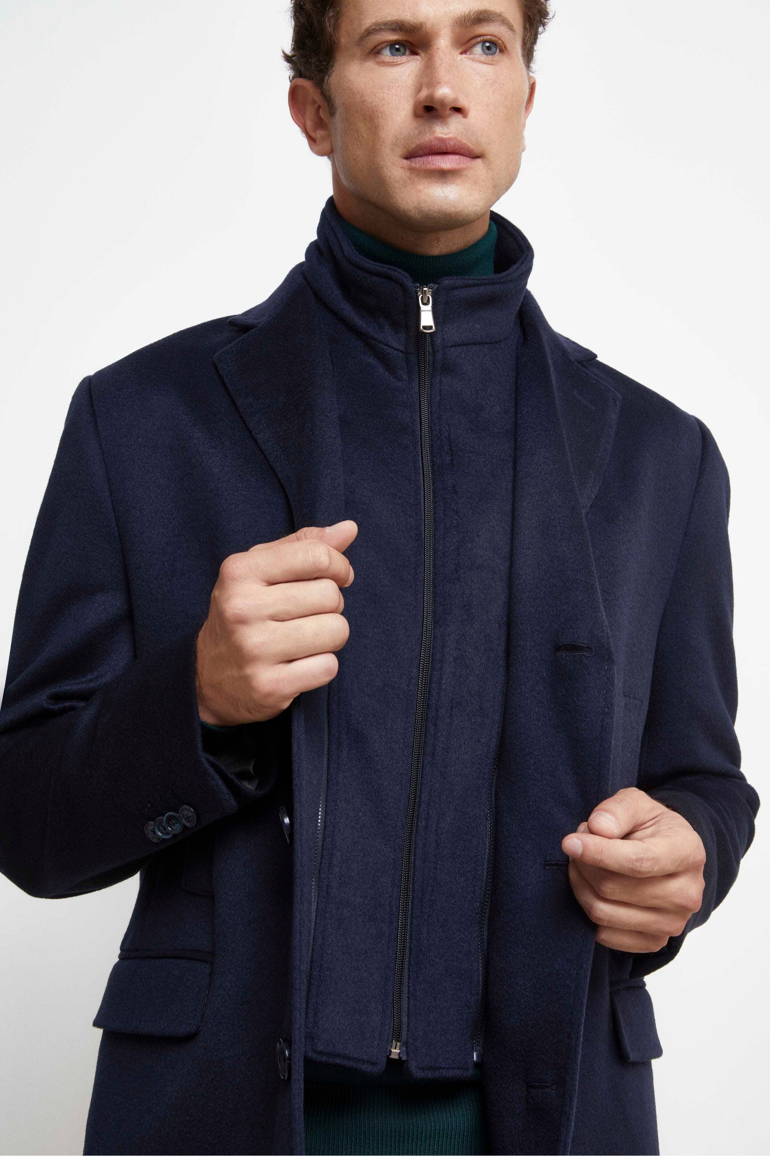 BLURiscopri il piacere del lusso con il nostro cappotto corto blu da uomo, realizzato con il pregiato tessuto del Lanificio F.lli Cerruti dal 1881. Questo capo esclusivo combina lana e cashmere per offrire calore e morbidezza incomparabili. Caratterizzato da un revers classico con paramontura in tessuto staccabile, ti permette di variare il tuo stile secondo l’occasione. La chiusura con tre bottoni frontali, le tasche a pattina frontali e laterali, e l’elegante spacco singolo posteriore, conferiscono un tocco di eleganza classica e funzionale. Completamente foderato e prodotto interamente in Italia, questo cappotto rappresenta l’essenza della sartorialità italiana, perfetto per l’uomo moderno che cerca stile senza tempo e qualità superiore. Il modello è alto 189 cm e indossa la taglia 50.