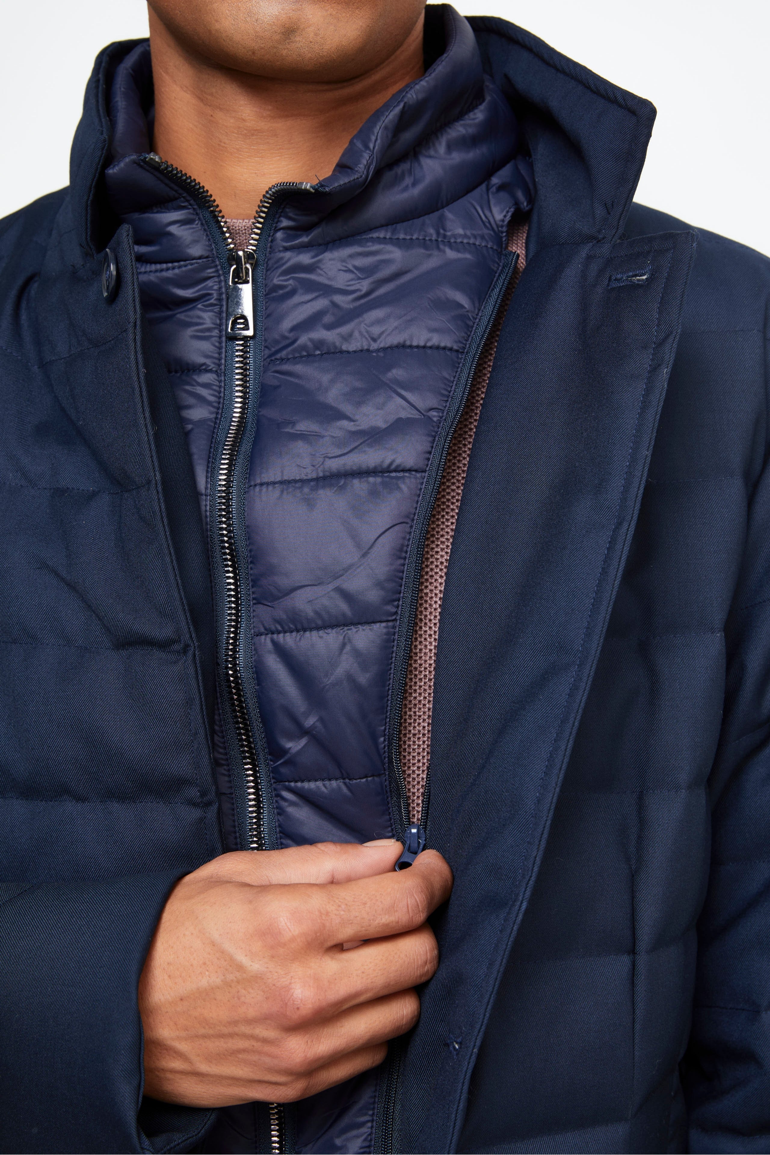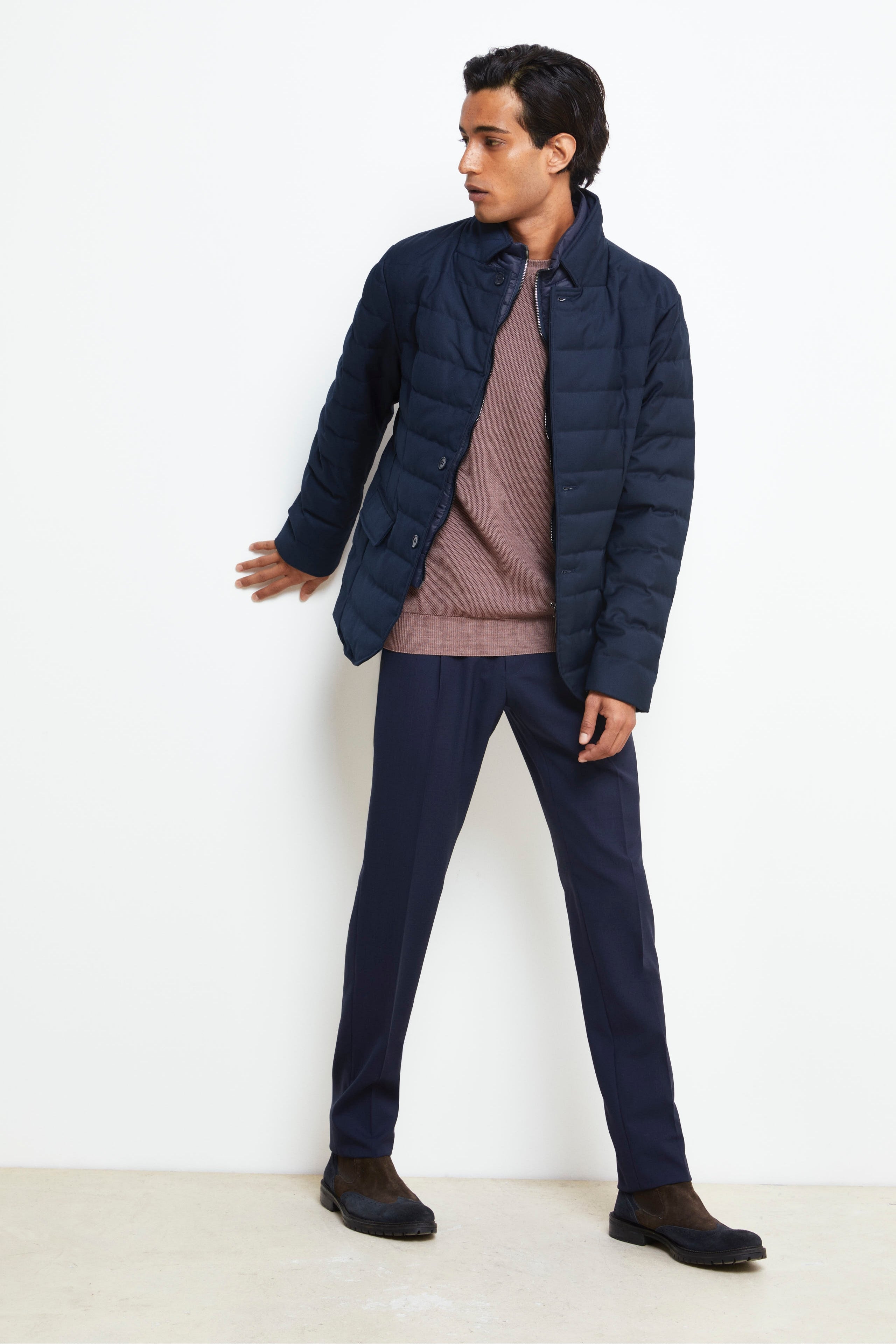 BLULa giacca da uomo imbottita con pettorina della collezione IL Lanificio è sinonimo di eleganza e praticità, ideale per affrontare le stagioni più fredde con stile. Imbottito con vera piuma, questo capo offre un isolamento termico eccellente, garantendo comfort e calore. Il collo alto e la pettorina removibile aggiungono versatilità, permettendo di adattare la giacca a diverse condizioni climatiche e occasioni. Le tasche a pattina frontali offrono spazio pratico e sicuro, mentre la chiusura frontale a 2 bottoni e il rever classico donano un tocco di eleganza senza tempo. Con una vestibilità regolare, questa giacca si adatta perfettamente a qualsiasi tipo di corporatura, mantenendo un look sofisticato e rilassato. Perfetto per chi cerca un capo versatile che unisca funzionalità e stile, è la scelta ideale per chi desidera distinguersi con un look raffinato e pratico. Il modello è alto 184 cm e indossa la taglia 50.