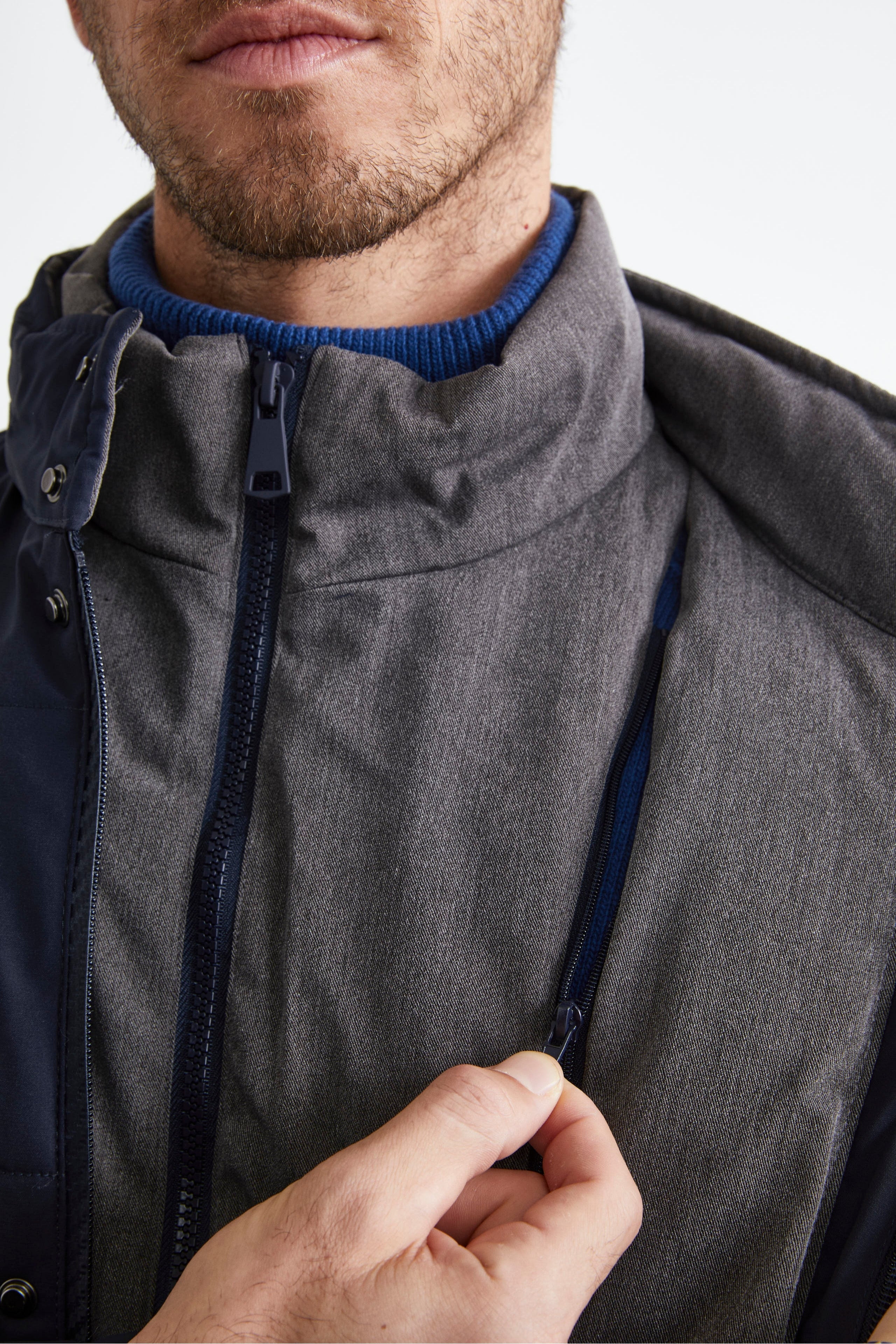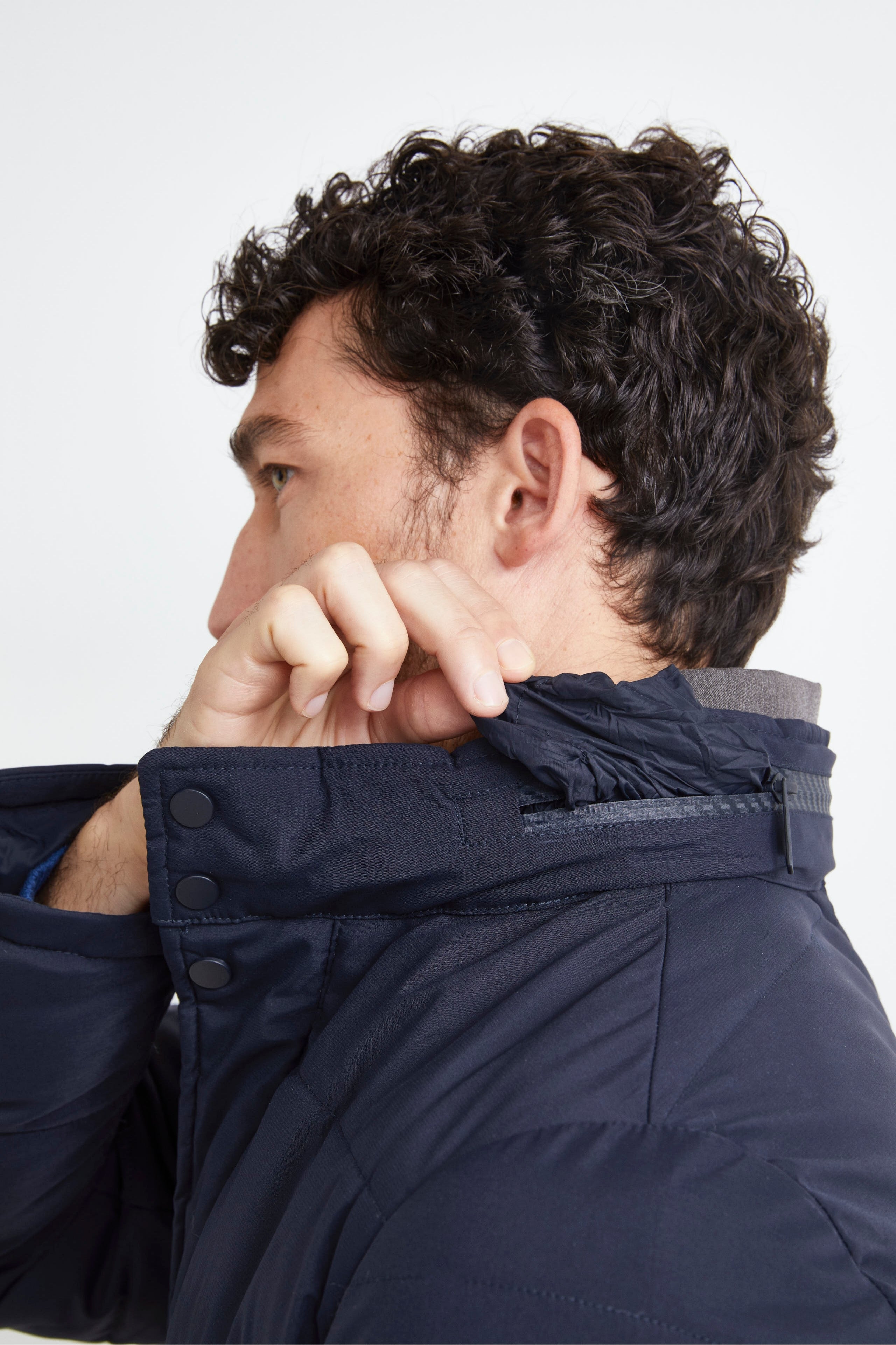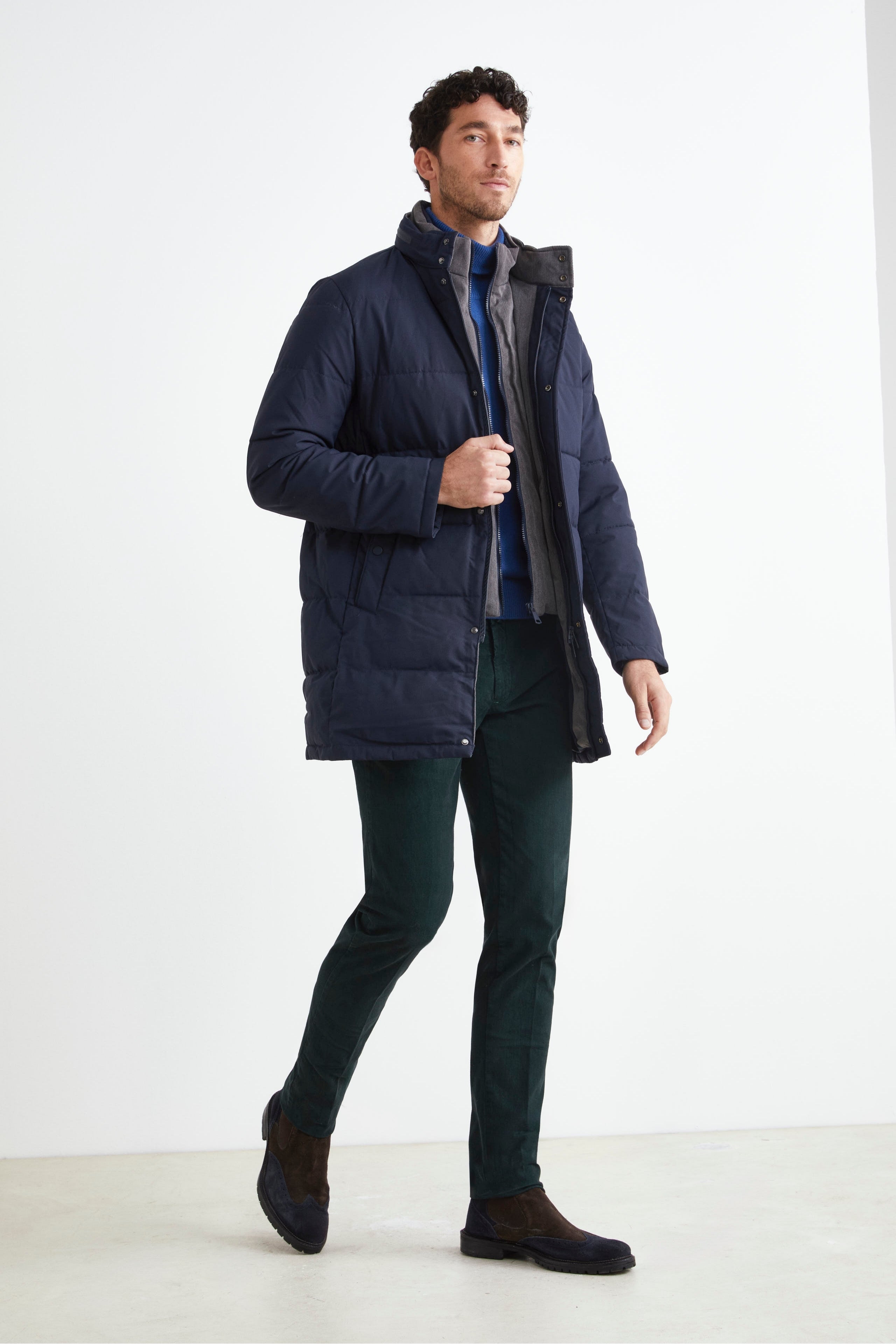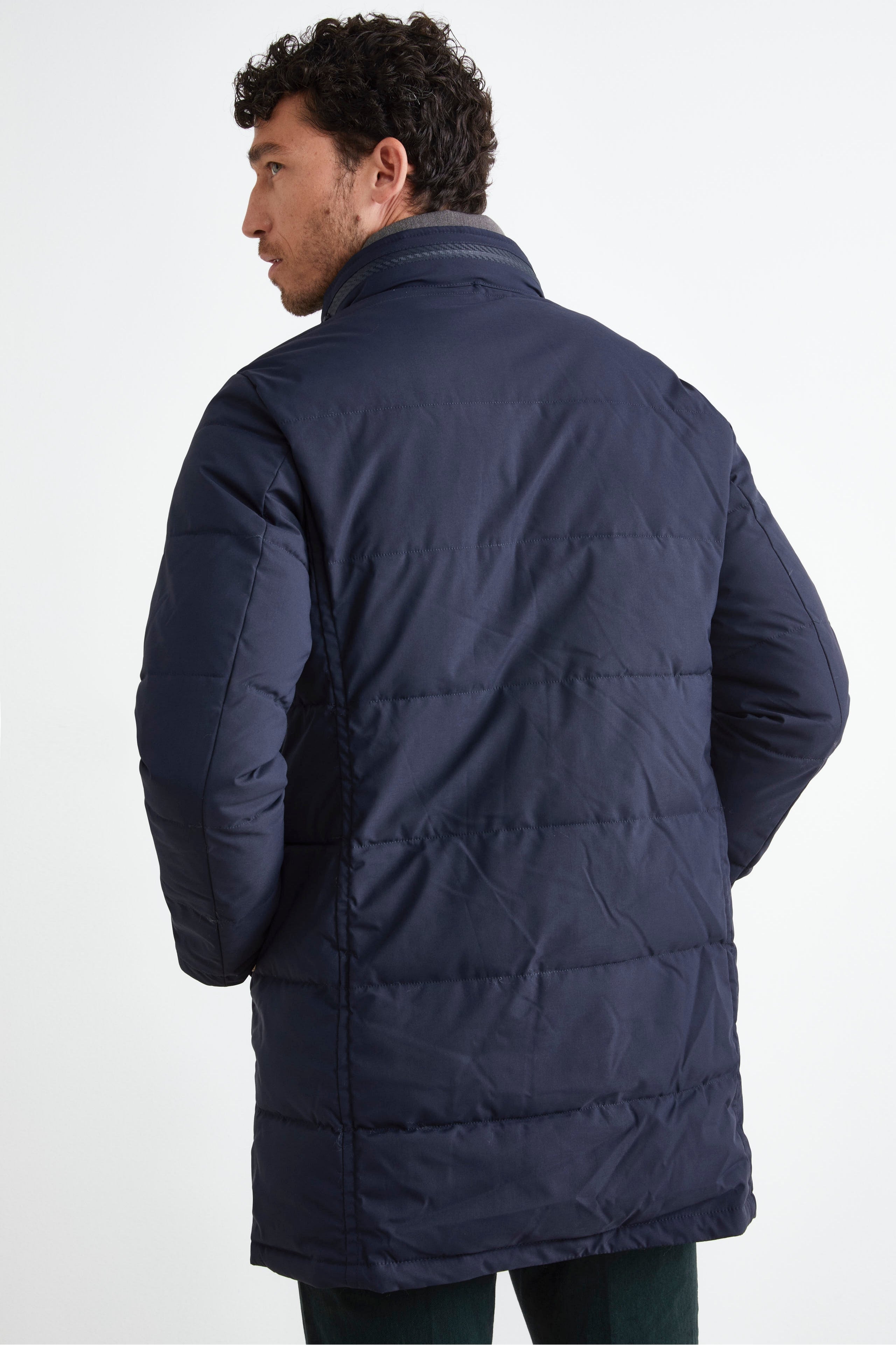 BLUGiaccone lungo trapuntato blu, il capo ideale per affrontare l’inverno con stile e comfort. Caratterizzato da una pettorina removibile, una doppia chiusura con zip e bottoni frontale e da due comode tasche laterali, questo giubbotto da uomo è un must-have di ogni guardaroba maschile. Il cappuccio estraibile e la trapunta imbottita interna sono elementi di design eleganti e funzionali, mentre la lunghezza alla coscia e la vestibilità regolare lo rendono perfetto per essere indossato in ogni occasione. Il modello è alto 189 cm e indossa la taglia 50.