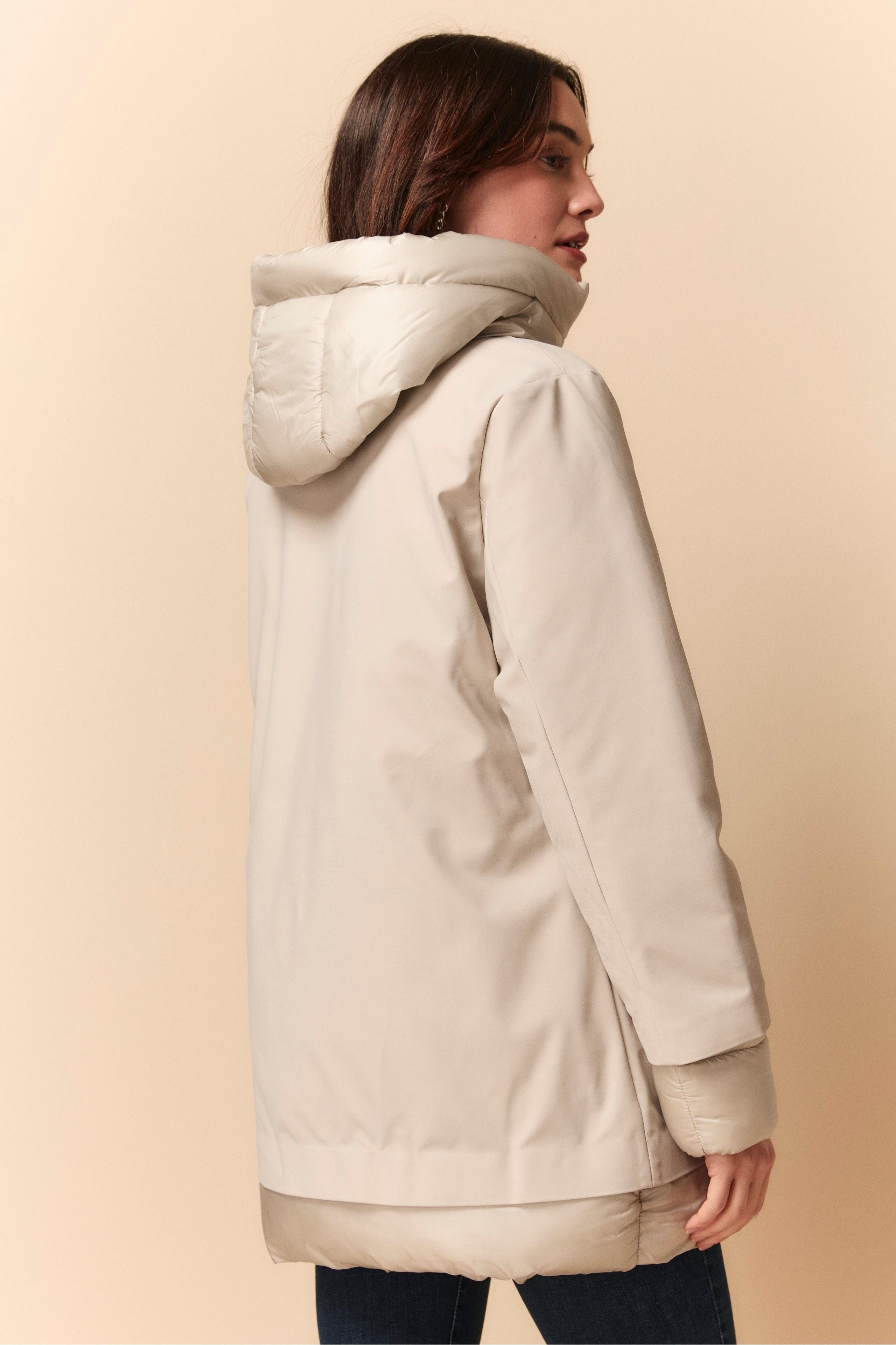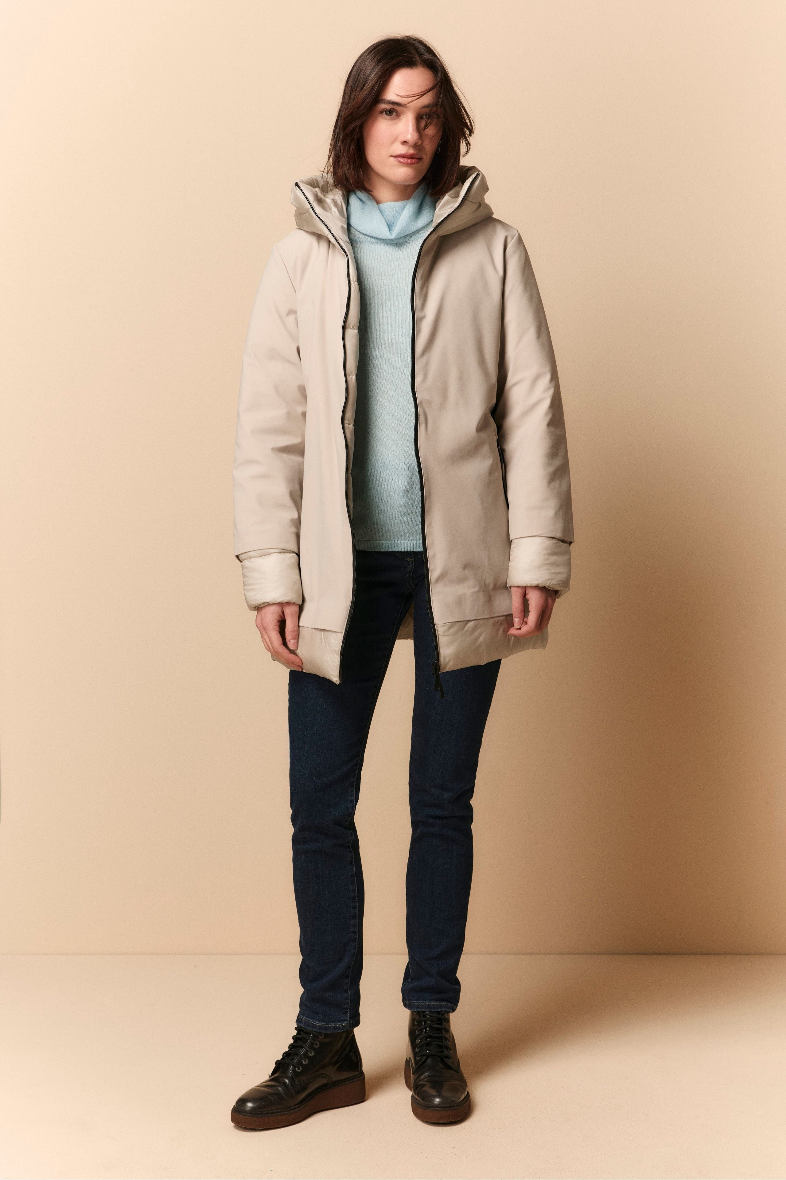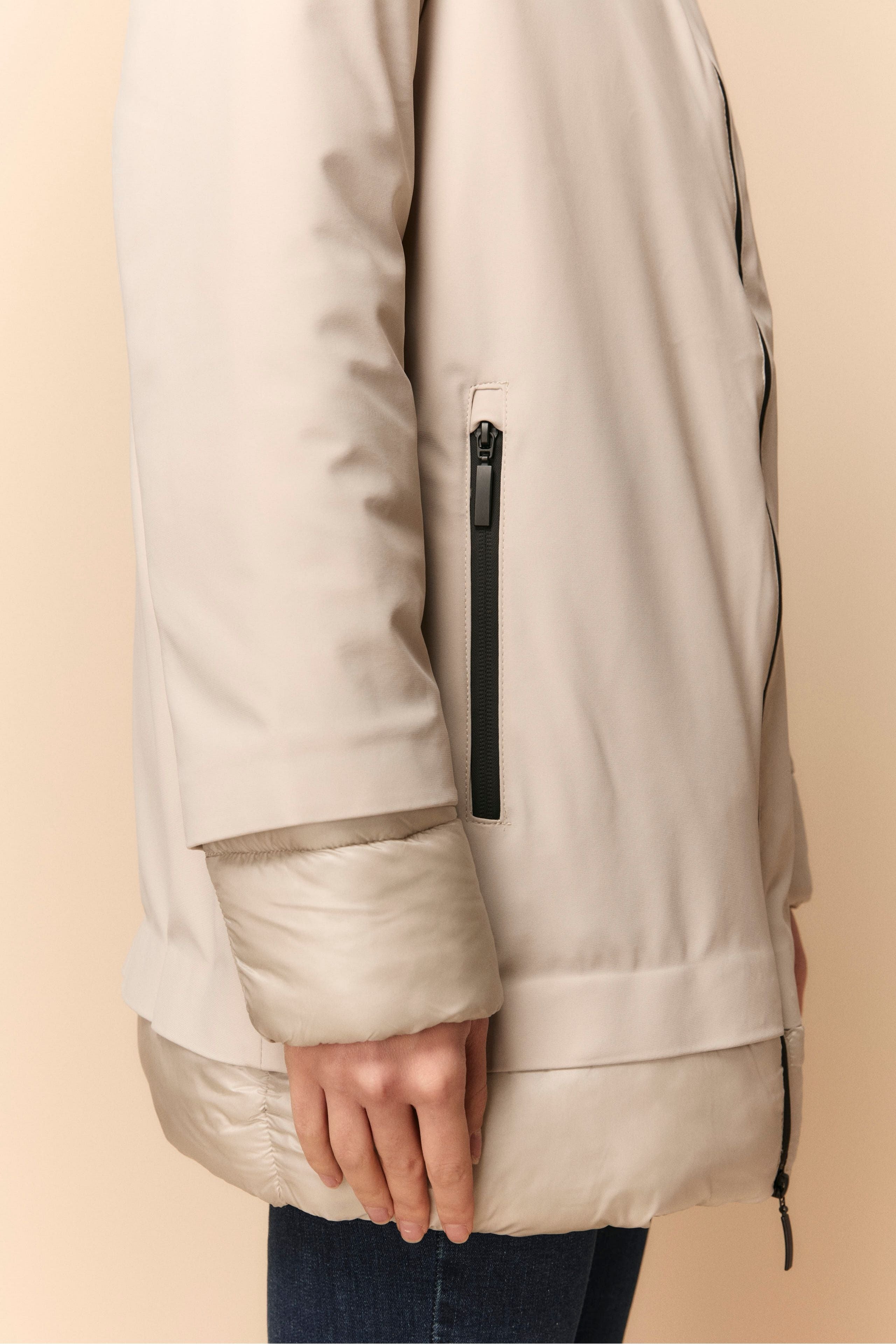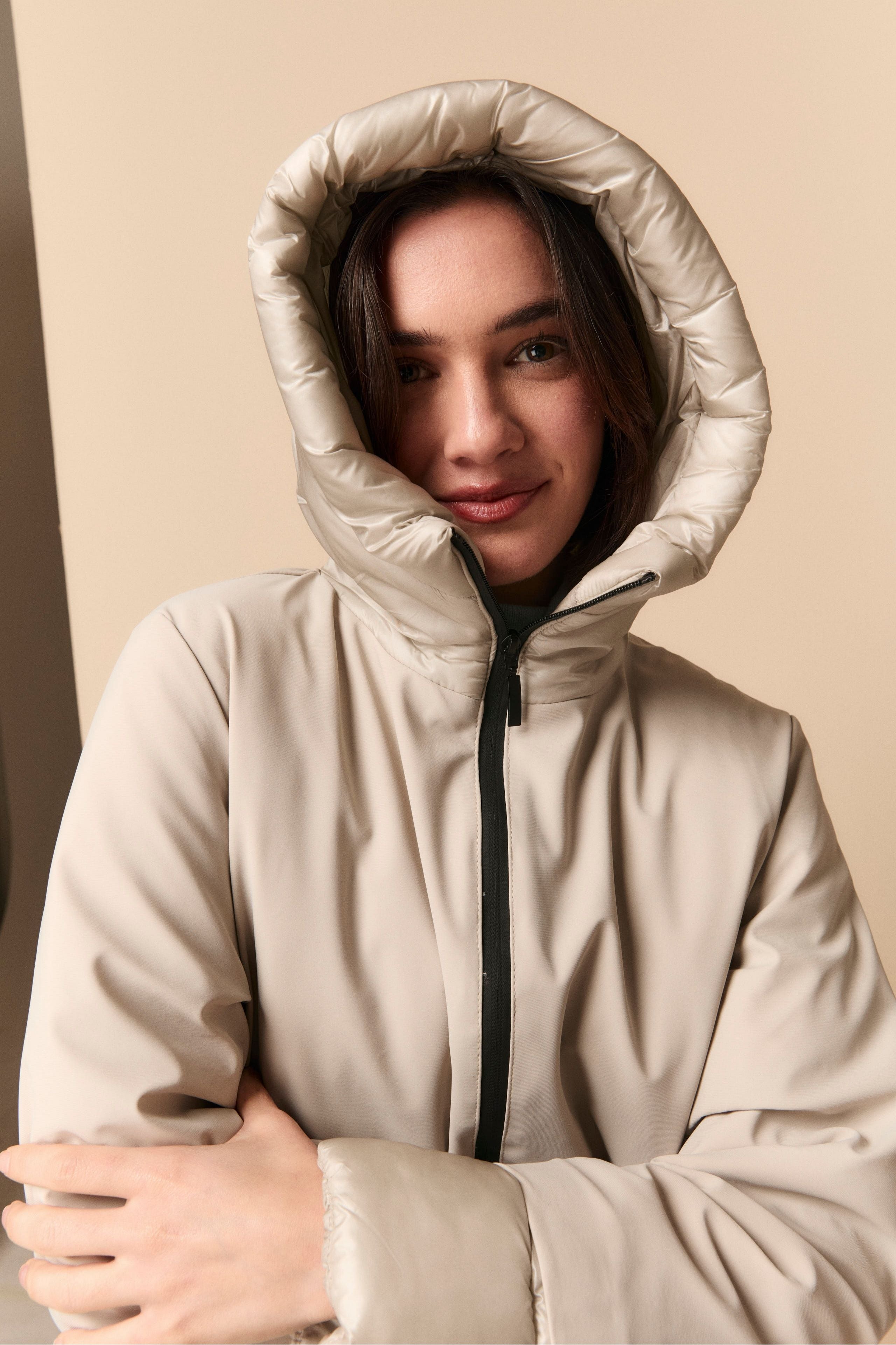 Preparati all’inverno con il giaccone tecnico da donna, realizzato in tessuto tecnico per garantire calore e resistenza agli agenti atmosferici. Imbottito con ovatta, offre il massimo comfort anche nelle giornate più fredde. Il design include dettagli funzionali come polsini, bordo inferiore, cappuccio e polsini in nylon, ideali per una maggiore protezione dal vento. Con una lunghezza alla coscia, tasche laterali con zip e una chiusura frontale con zip, questo capo unisce praticità e stile. La vestibilità regolare lo rende perfetto per qualsiasi occasione, dal tempo libero alle attività all’aperto. Un must-have per affrontare l’inverno con eleganza e funzionalità. La modella è alta 176 cm e indossa la taglia 44.