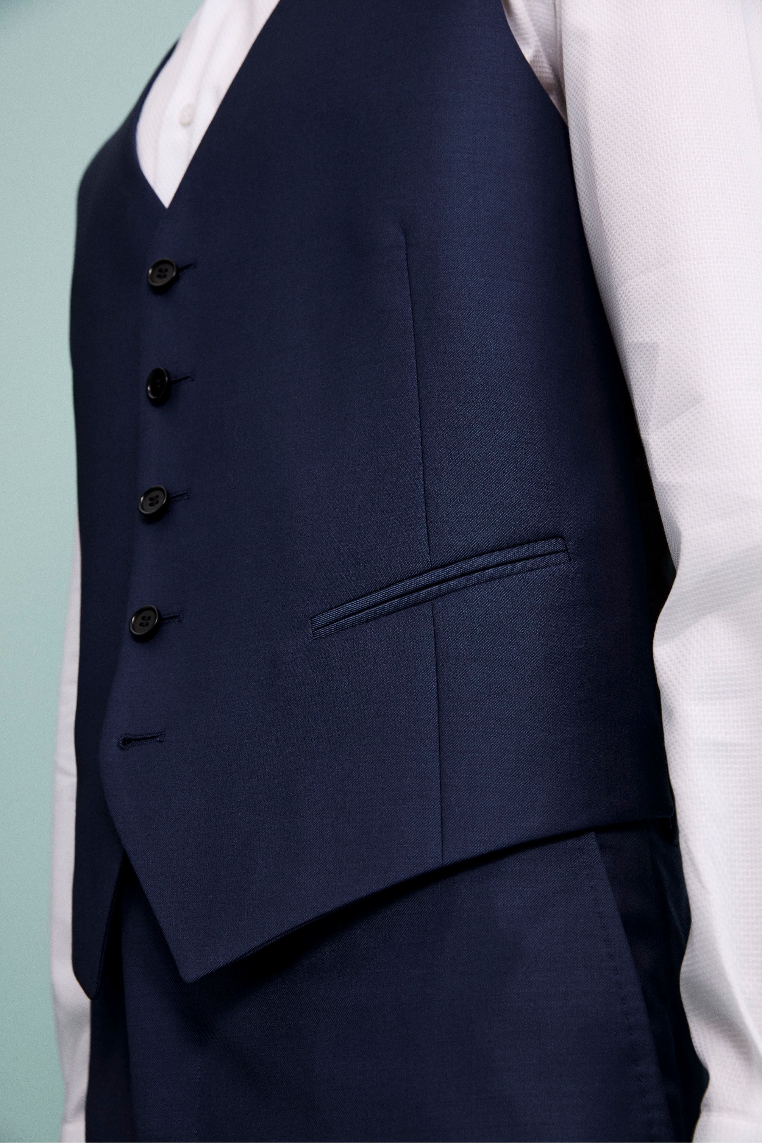 BLUGilet elegante da uomo realizzato in 100% lana vergine, progettato per offrire comfort, traspirabilità e resistenza alle pieghe. La chiusura frontale con bottoni ricoperti e le tasche anteriori a filetto aggiungono un dettaglio sartoriale e funzionale. Il cinturino regolabile sul retro consente una vestibilità impeccabile mentre la vestibilità regolare assicura un perfetto equilibrio tra comfort e struttura. Ideale per cerimonie ed eventi speciali, questo gilet uomo è perfetto da abbinare con giacca e pantaloni coordinati per un look elegante e personalizzato. Interamente Made in Italy. Il modello è alto 189 cm e indossa la taglia 50.