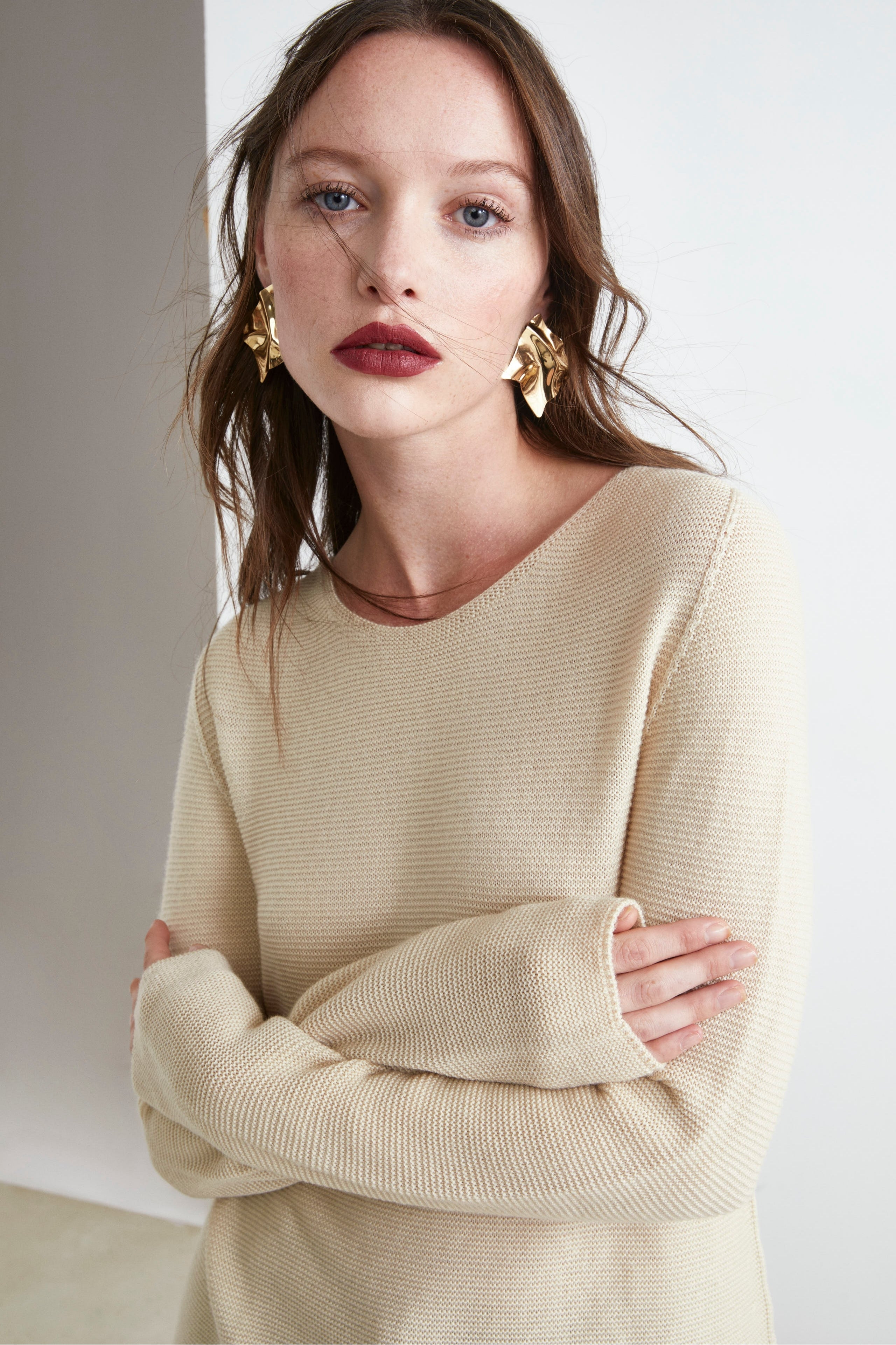Scopri la raffinatezza senza tempo della nostra Maglia Barchetta in Lana Merino, un capo della collezione IL Lanificio, pensato per chi desidera un perfetto equilibrio tra stile e comfort. Realizzata interamente in Italia con lana Merino di altissima qualità, questa maglia da donna offre una finezza del tessuto di grado 7, sinonimo di estrema morbidezza e leggerezza, ideale per le giornate più fresche. Il suo design si distingue per lo scollo a barchetta, che dona un tocco femminile e raffinato, perfetto per valorizzare il collo e le spalle. La vestibilità regolare assicura un comfort ottimale, mentre gli spacchetti laterali aggiungono un dettaglio moderno, ideale per creare movimento e versatilità nell’outfit. Perfetta per un look casual chic o per essere indossata sotto un cappotto elegante, questa maglia in lana Merino è un must-have per il guardaroba di ogni donna. Grazie alla sua lavorazione pregiata, è un capo che si distingue per la sua durevolezza e il comfort senza pari. La modella è alta 170 cm e indossa la taglia 42.