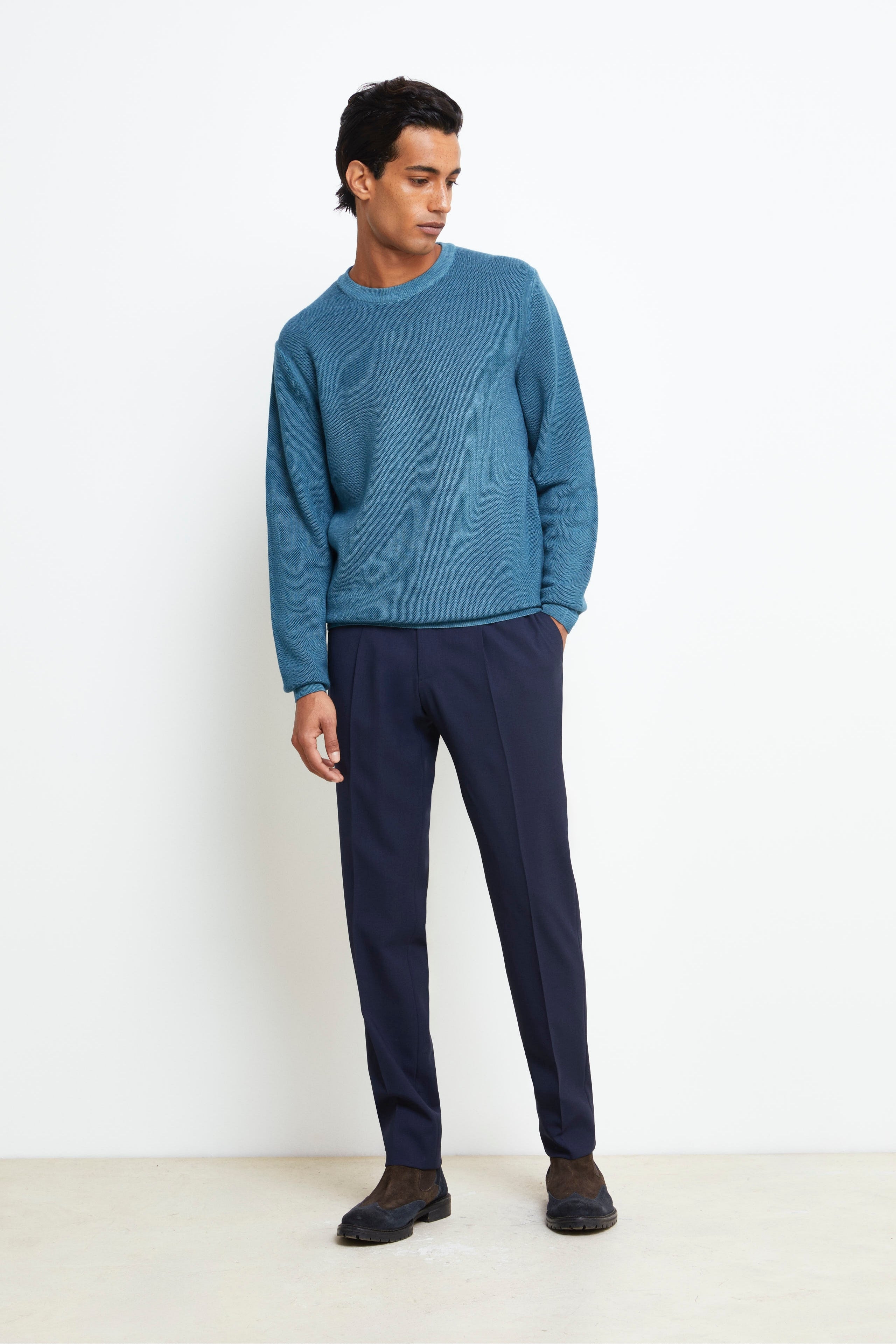 BLUI pantaloni blu eleganti uomo della collezione IL Lanificio sono sinonimo di qualità e stile senza tempo. Questo pantalone coulisse in lana, realizzato al 100% in lana vergine, è l’emblema dell’eccellenza sartoriale italiana. Con una vestibilità regolare, offre il massimo comfort e una silhouette raffinata, rendendolo ideale per ogni occasione, sia formale che casual. Dotato di una chiusura frontale con 1 bottone, pinces che conferiscono struttura, e una coulisse in vita regolabile, questo pantalone è pensato per garantire eleganza e praticità. Le tasche America anteriori e le tasche a doppio filetto posteriori aggiungono un tocco funzionale e sofisticato, mentre i passanti per cintura offrono la possibilità di abbinare una cintura, completando il look con versatilità. La collezione IL Lanificio si distingue per la qualità dei materiali e l’artigianalità Made in Italy, e questi pantaloni ne sono una dimostrazione. Perfetto per l’uomo che cerca pantaloni eleganti senza rinunciare al comfort, è un capo immancabile nel guardaroba maschile. Il modello è alto 184 cm e indossa la taglia 48.