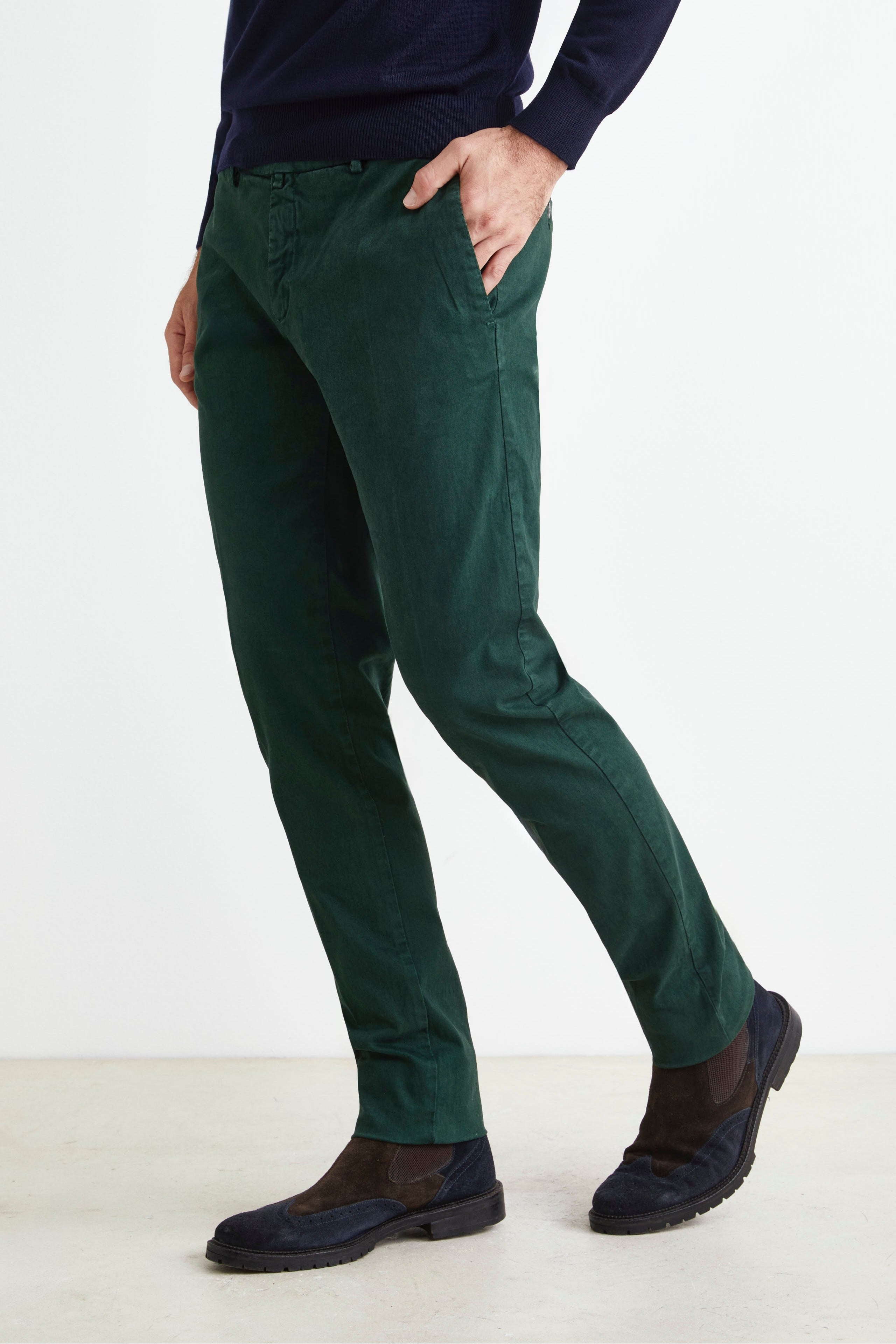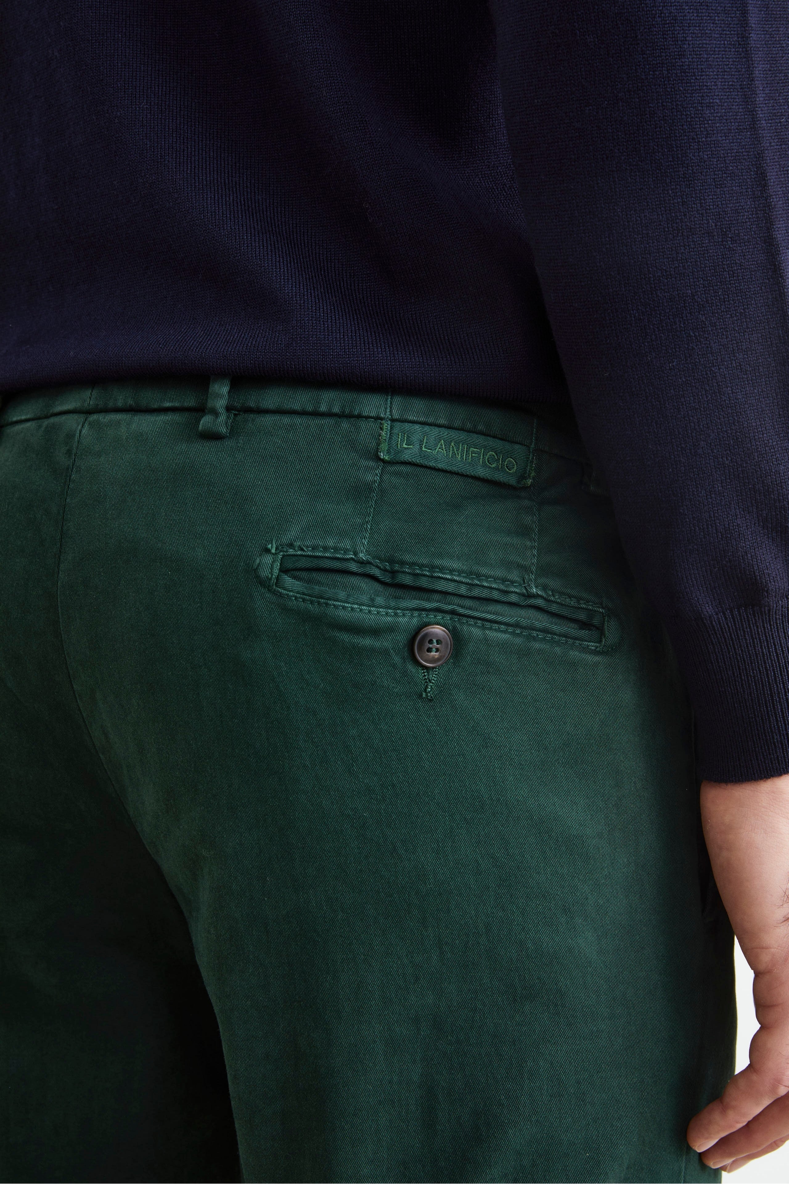Il pantalone stretch in gabardina da uomo è la scelta perfetta per chi cerca comfort e stile in un unico capo. Realizzato in cotone di alta qualità, questo pantalone si distingue per la sua vestibilità slim fit che esalta la silhouette maschile. Dotato di tasche america, passanti per cintura e una pratica chiusura con cinturino e bottone frontale, combina eleganza e funzionalità. Le tasche posteriori con bottone aggiungono un tocco di classe in più. Il tessuto stretch in gabardina garantisce libertà di movimento e un fit impeccabile per tutto il giorno. Parte della prestigiosa collezione IL Lanificio, questo pantalone made in Italy è perfetto sia per look casual con una camicia e sneakers, sia per occasioni formali abbinato a un blazer e mocassini. Il modello è alto 189 cm e indossa la taglia 50.