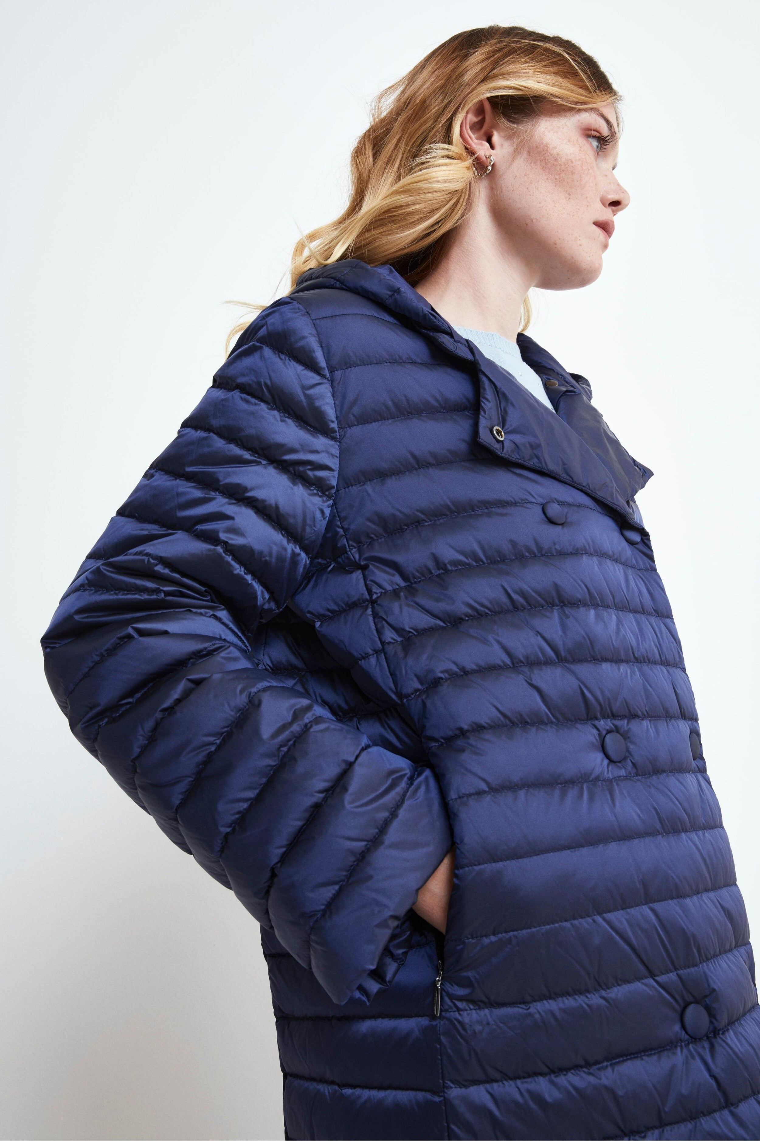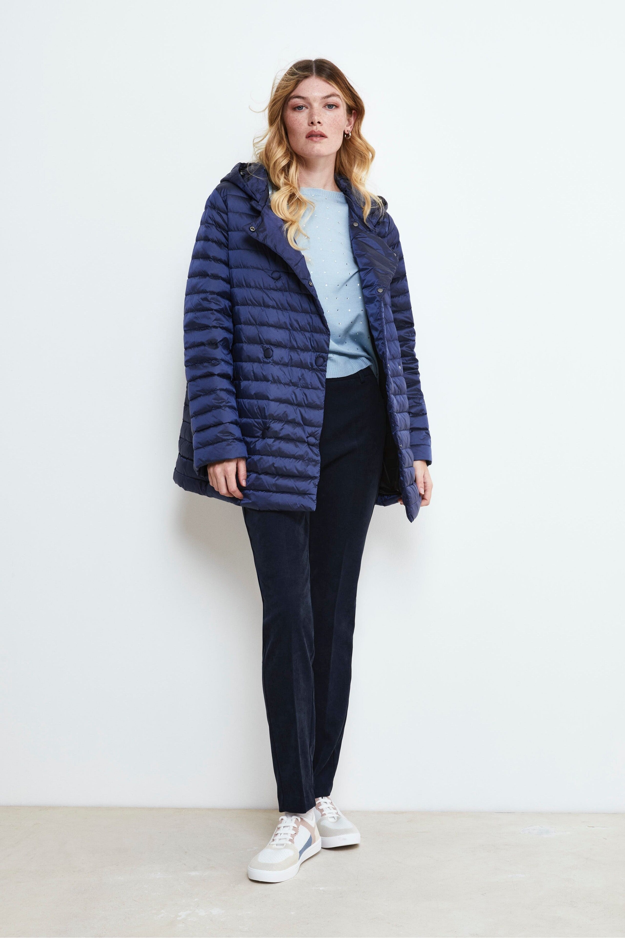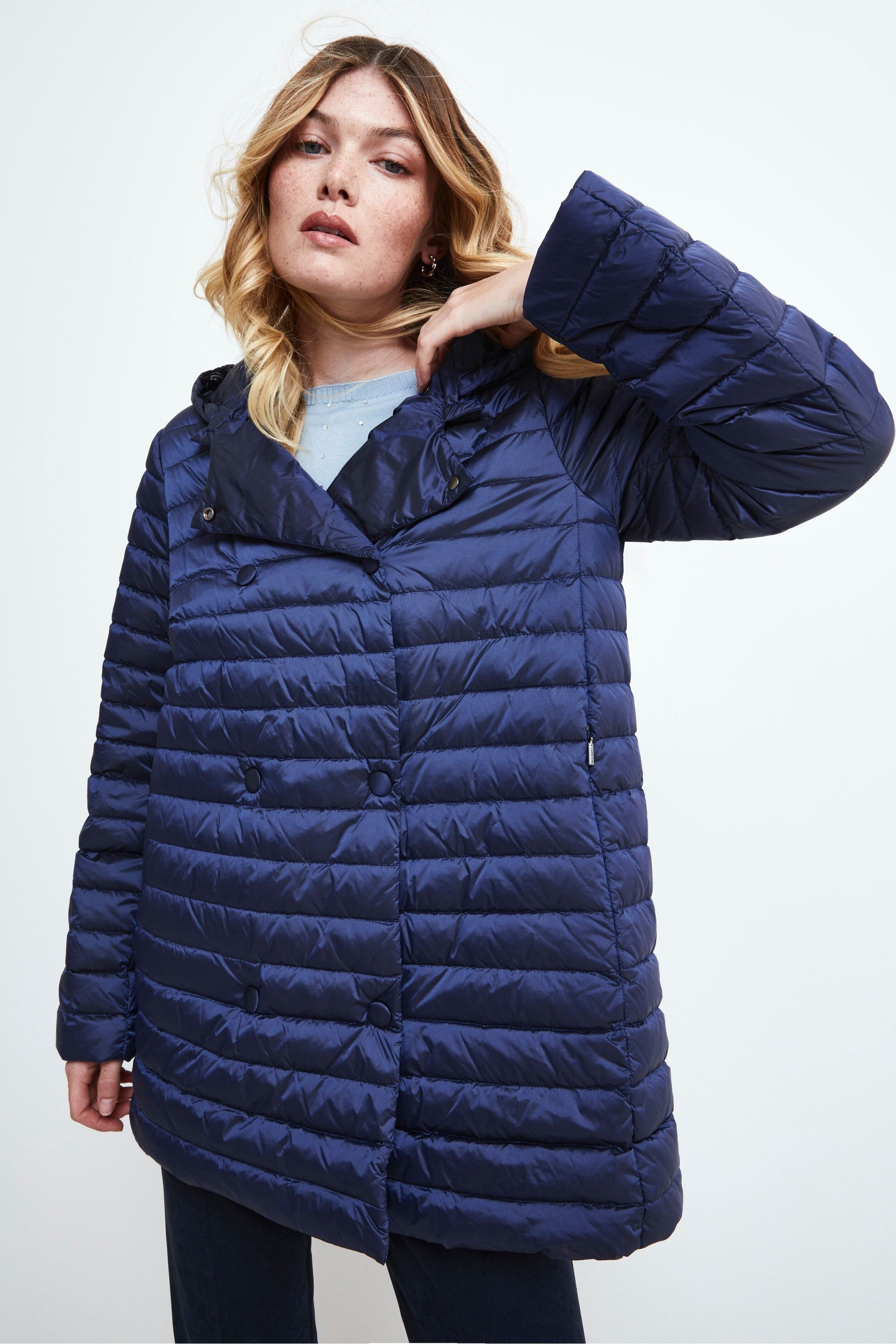 Questo Piumino donna losanga trapuntato unisce stile e praticità in un unico capo. Con una vestibilità regolare e una lunghezza fino alla coscia, è perfetto per affrontare le giornate più fredde con eleganza. Il rever classico e la chiusura a doppio petto aggiungono un tocco sofisticato, mentre le tasche laterali a scomparsa mantengono il design pulito e funzionale. Il cappuccio staccabile offre versatilità, rendendolo adatto a diverse occasioni e condizioni climatiche. Un must-have per un look invernale raffinato. La modella è alta 170 cm e indossa la taglia 42.