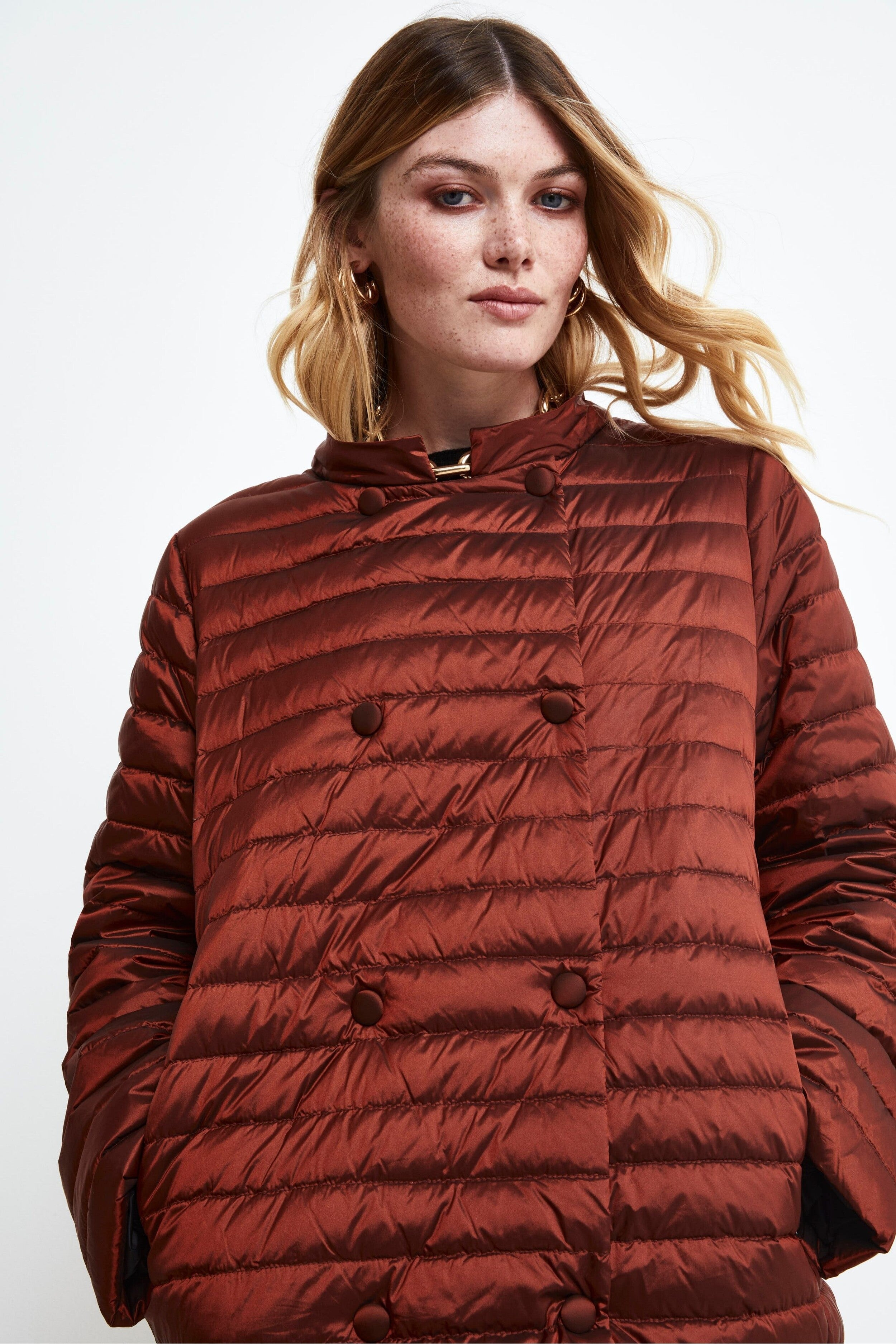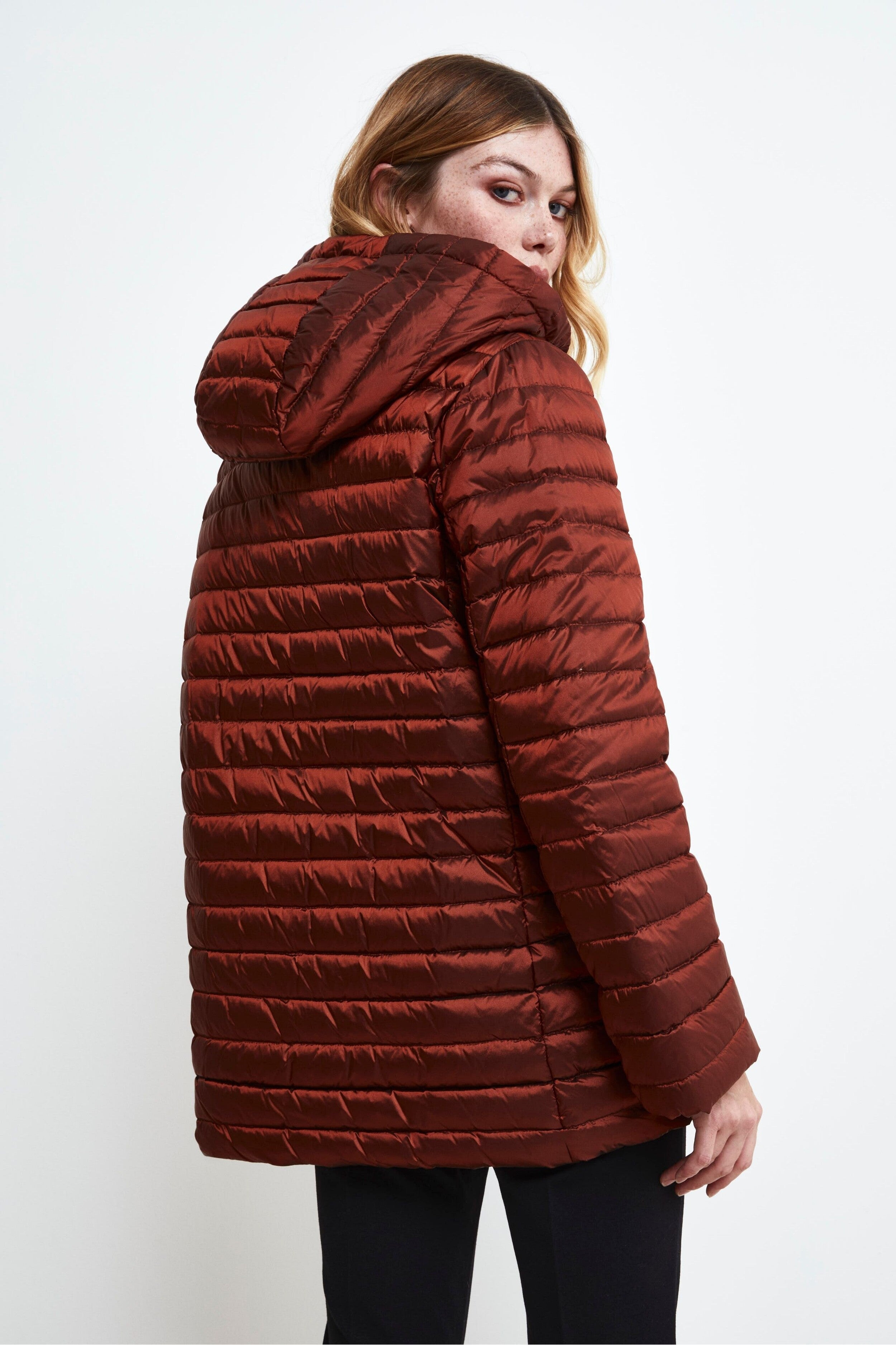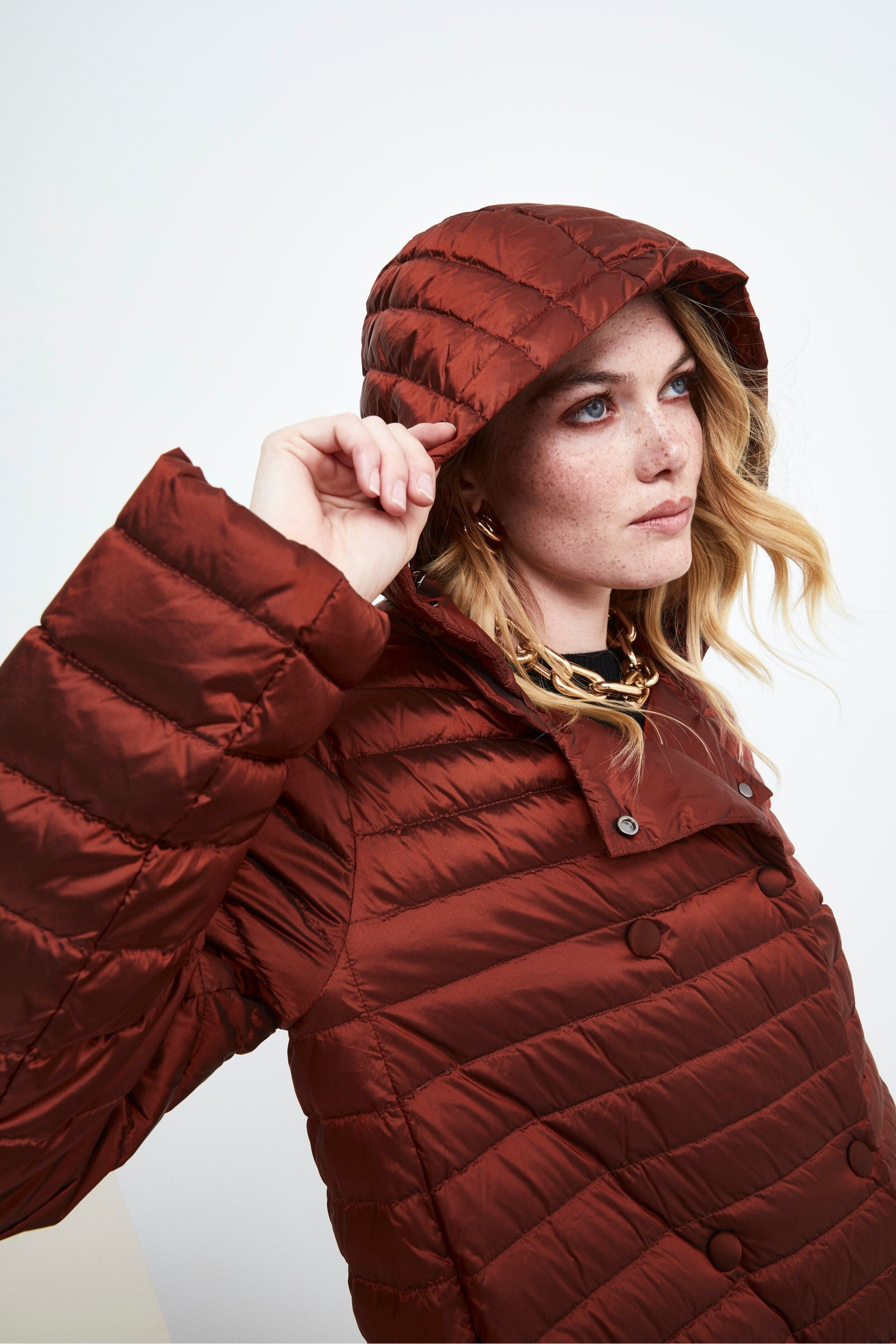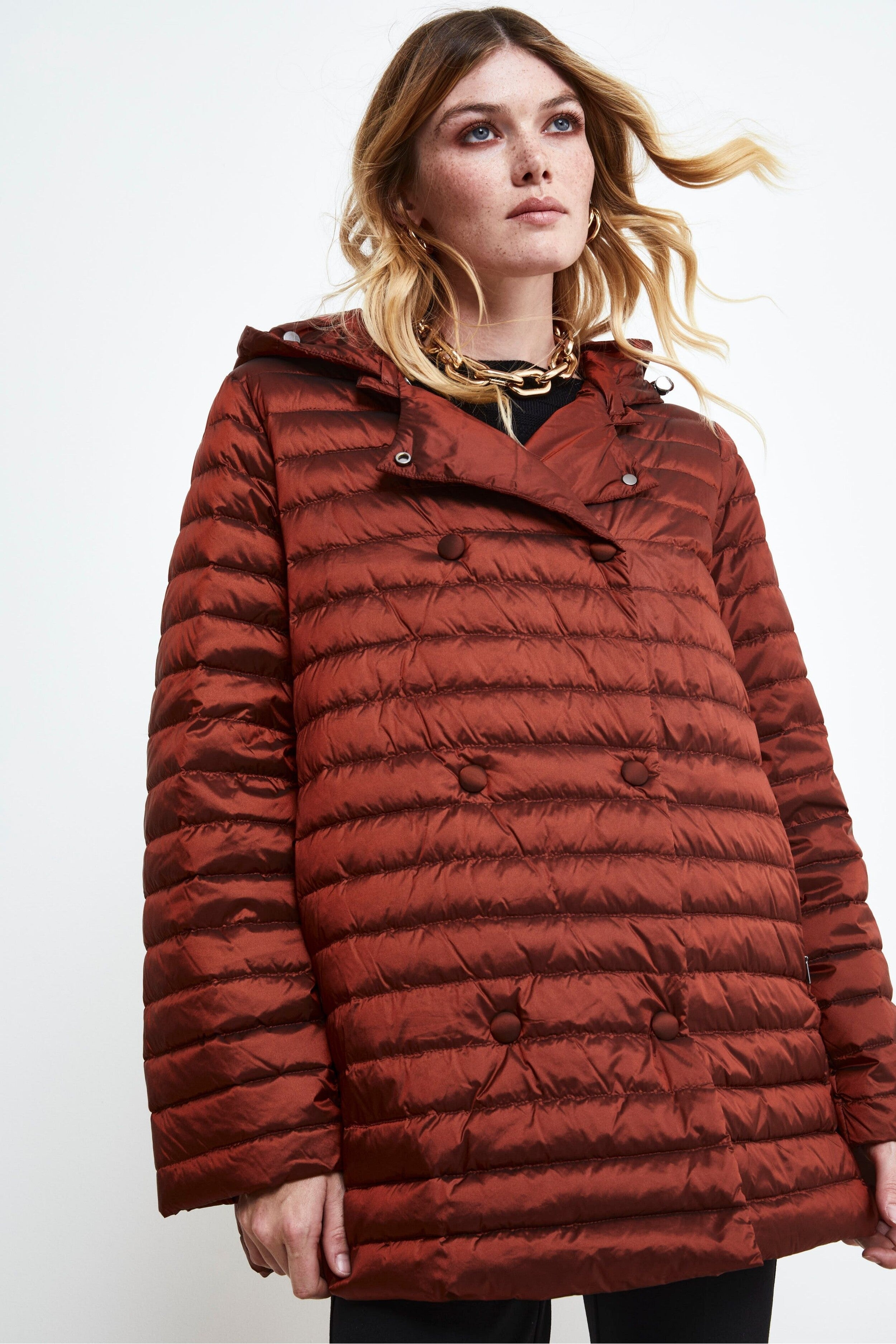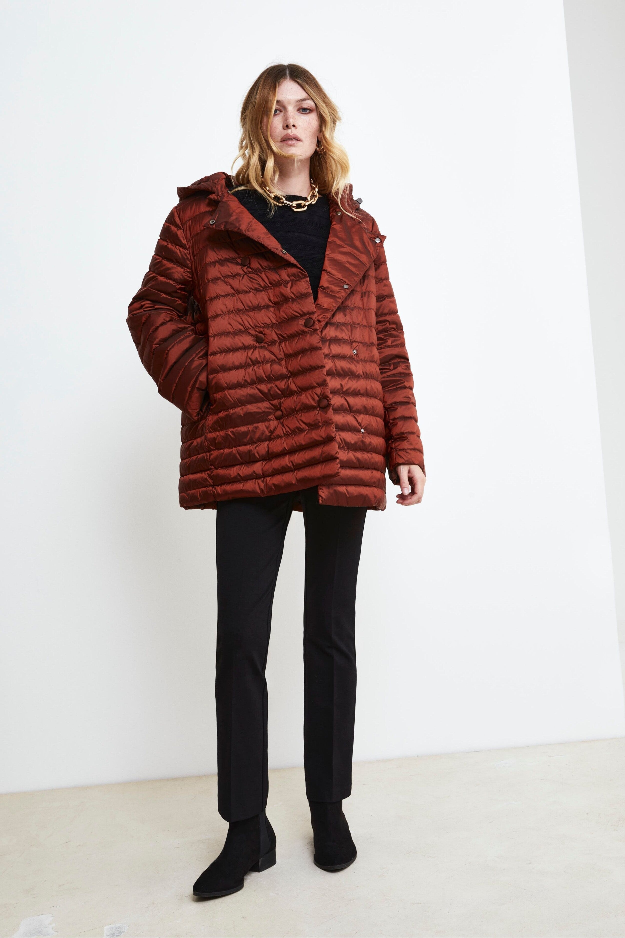 Questo Giaccone donna losanga trapuntato unisce stile e praticità in un unico capo. Con una vestibilità regolare e una lunghezza fino alla coscia, è perfetto per affrontare le giornate più fredde con eleganza. Il rever classico e la chiusura a doppio petto aggiungono un tocco sofisticato, mentre le tasche laterali a scomparsa mantengono il design pulito e funzionale. Il cappuccio staccabile offre versatilità, rendendolo adatto a diverse occasioni e condizioni climatiche. Un must-have per un look invernale raffinato. La modella è alta 170 cm e indossa la taglia 42.