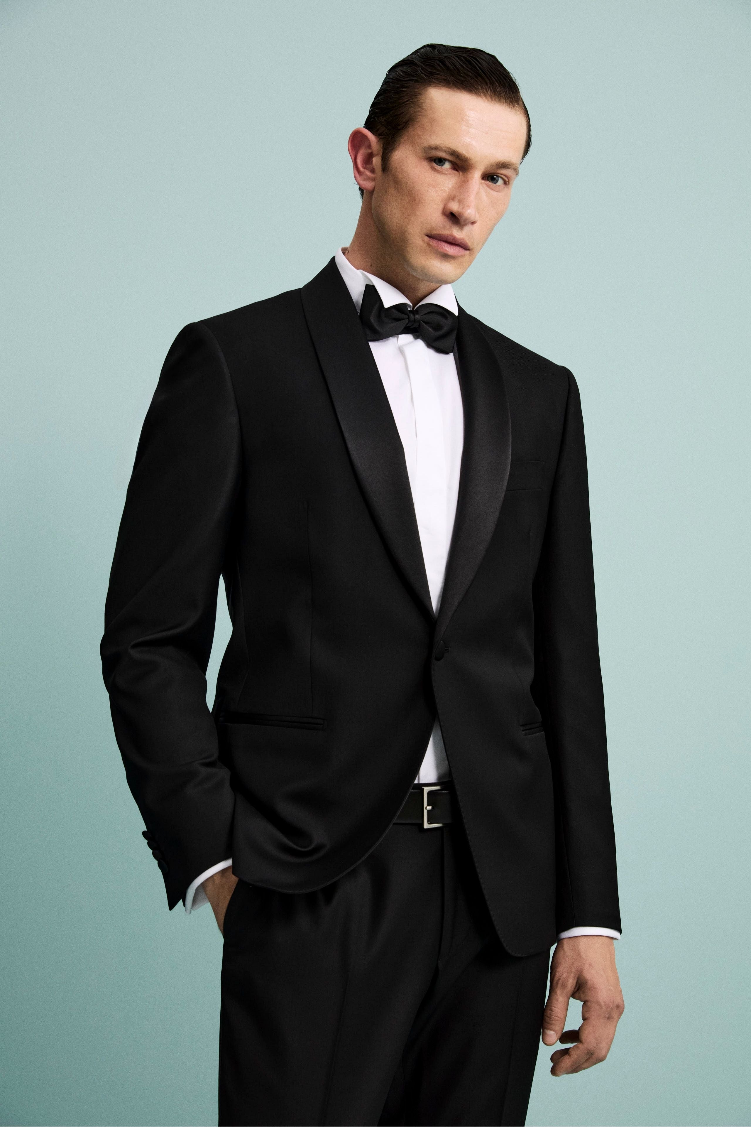NEROSmoking Cerimonia da uomo, confezionato in pregiata lana vergine Nobility 150’s, firmata Cerruti dal 1881, questo smoking Made in Italy unisce tradizione sartoriale e raffinatezza contemporanea. La giacca, dal taglio regolare e vestibilità slim Drop 8, è impreziosita da un elegante revers a scialle in raso, completamente foderata, con tasche anteriori a filetto e taschino a taglio sul cuore, perfetto per una pochette. La chiusura a un bottone dona un equilibrio raffinato alla silhouette. I pantaloni coordinati presentano una chiusura frontale con fibbia e bottone, tasche America sui fianchi e doppio filetto con bottone sul retro. Perfetto per cerimonie ed eventi speciali, questo smoking elegante rappresenta l’eccellenza dello stile italiano. Il modello è alto 189 cm e indossa la taglia 50.