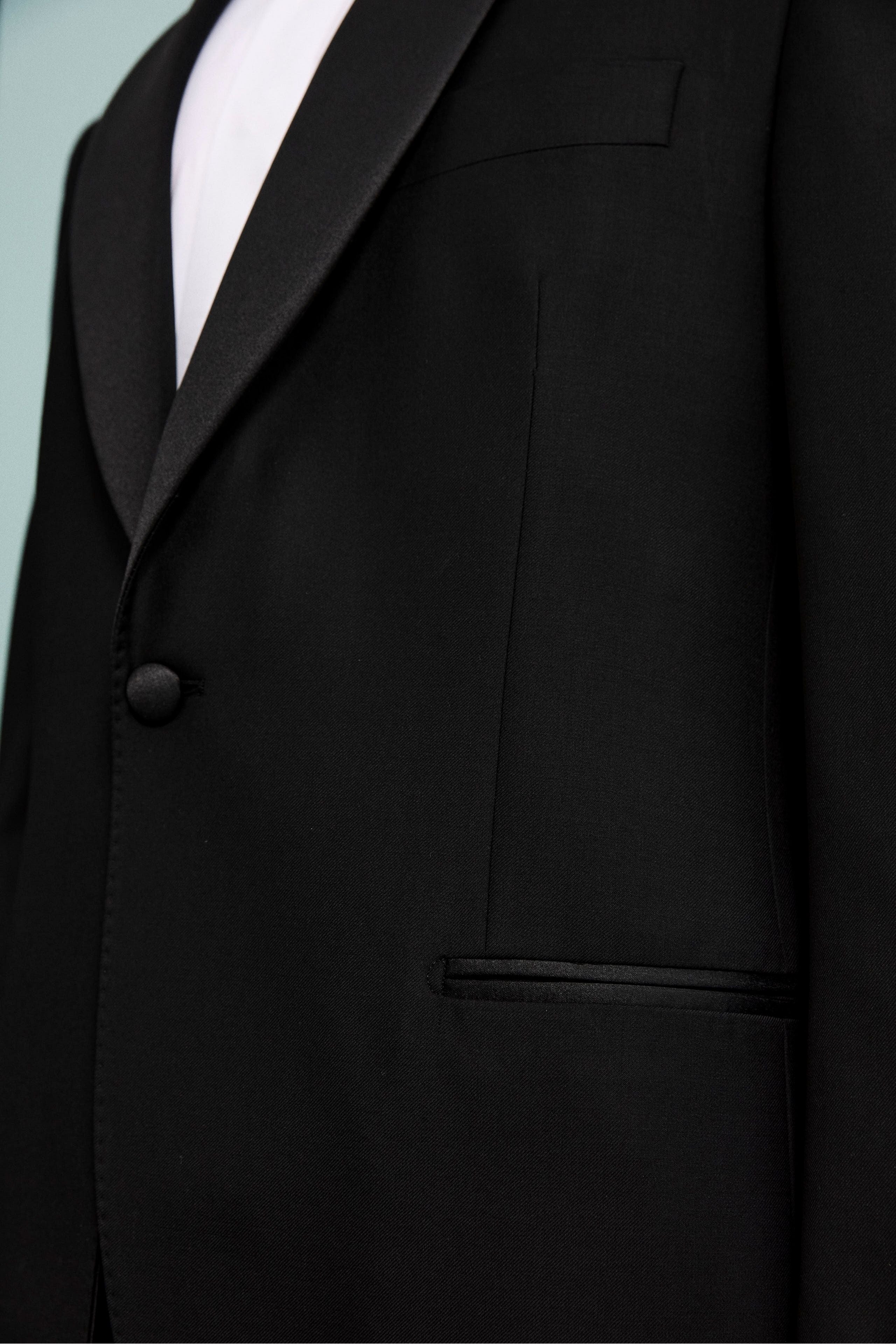 Smoking in Lana Vergine con Revers in Raso - NERO