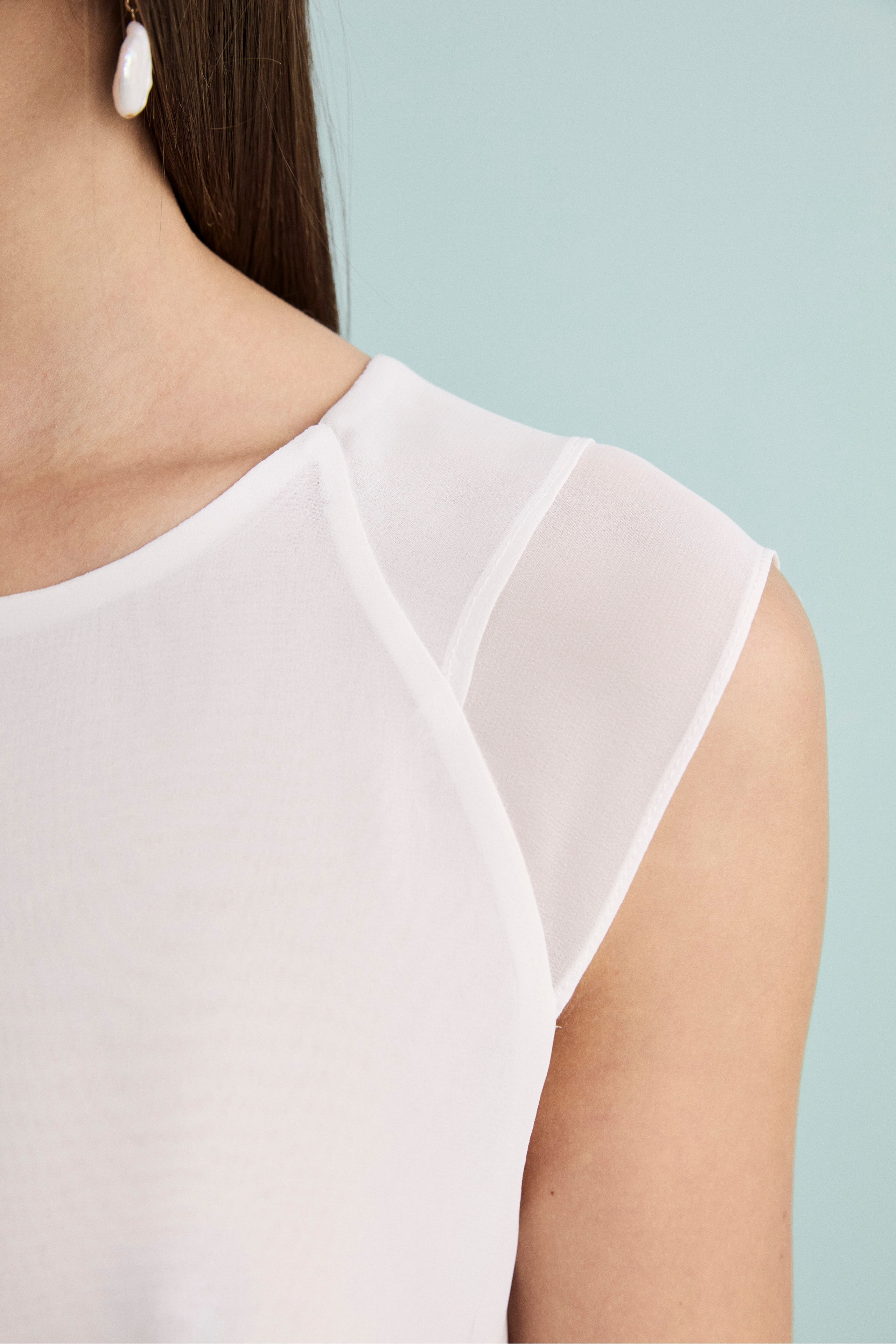 PANNATop Cerimonia da donna, un capo sofisticato realizzato in georgette, un tessuto pregiato noto per la sua fluidità e morbidezza, perfetto per eventi speciali e cerimonie. La sua texture leggera e trasparente conferisce al top un movimento naturale, mentre la sua struttura opaca aggiunge un tocco di raffinatezza unica. Il design del top è pensato per offrire sia stile che praticità: il doppio strato crea un effetto sofisticato, mentre le maniche ad aletta aggiungono un dettaglio moderno e femminile. La vestibilità morbida assicura libertà di movimento senza compromettere l’eleganza, mentre il girocollo semplice e pulito dona un aspetto delicato, perfetto per qualsiasi tipo di look. Parte della collezione esclusiva IL Lanificio, il Top Georgette da Cerimonia è realizzato in Italia, sinonimo di qualità e design raffinato. Da abbinare a pantaloni, gonne o tailleur, questo capo è la scelta perfetta per chi desidera un look sofisticato e confortevole. La modella è alta 177 cm e indossa la taglia 42.